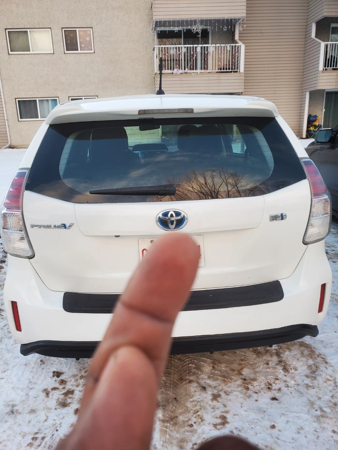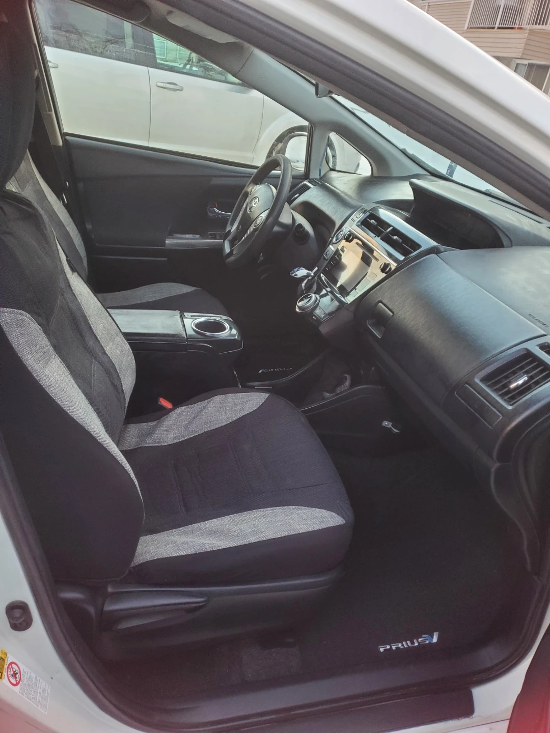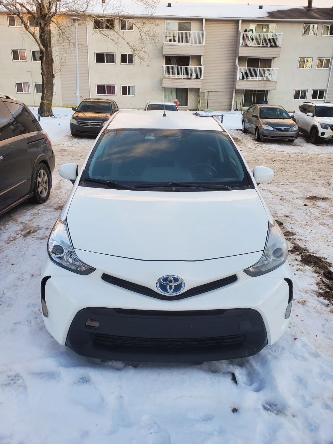 Selling a white Toyota Prius V. It appears to be in good condition. The interior features black and grey seat covers. Feel free to message me with any questions!