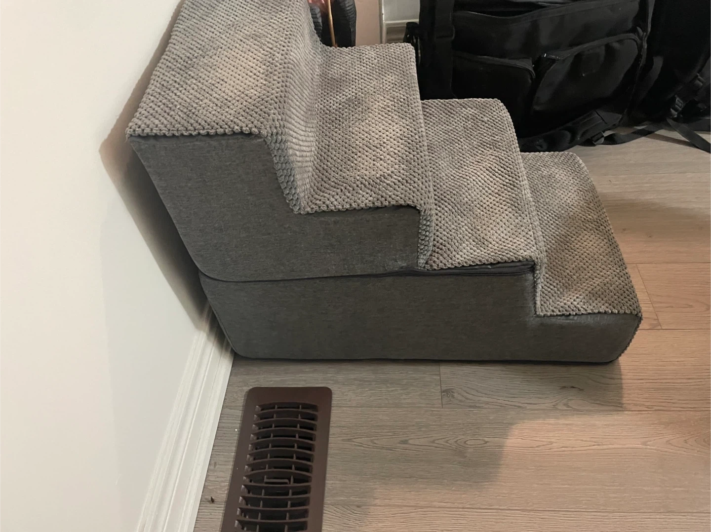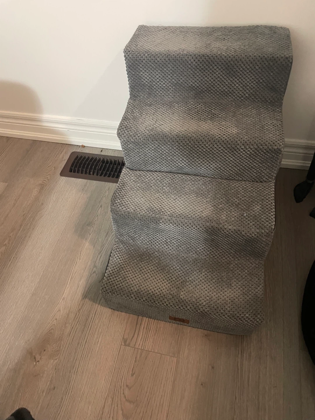 Selling a set of pet stairs! They're in great shape and perfect for helping your furry friend reach higher places like the couch or bed. The stairs are a neutral grey colour and would fit well with any decor.