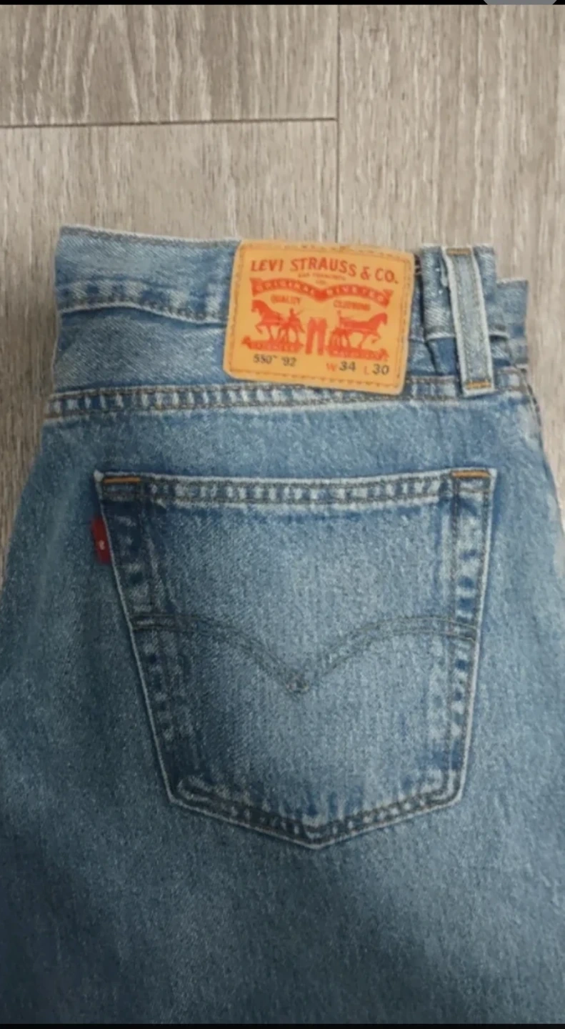 Selling a pair of Levi Strauss & Co. 550 '92 relaxed jeans. They are a size W34 L30. These jeans have a relaxed fit, loose through the thigh, and a leg that tapers from knee to ankle. They sit at the waist. A classic pair of jeans!