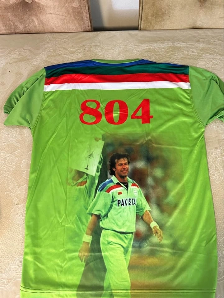 Both jerseys are unused, clean, and made with comfortable, breathable sports fabric. The Imran Khan jersey features high-quality front and back graphics, perfect for fans and collectors. The Champions Trophy jersey has the official-style green design with βPAKISTANβ across the front and bold star detailing.