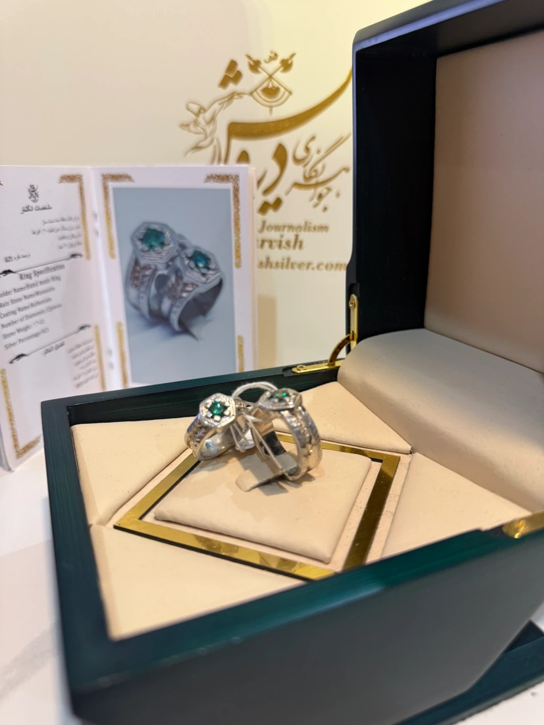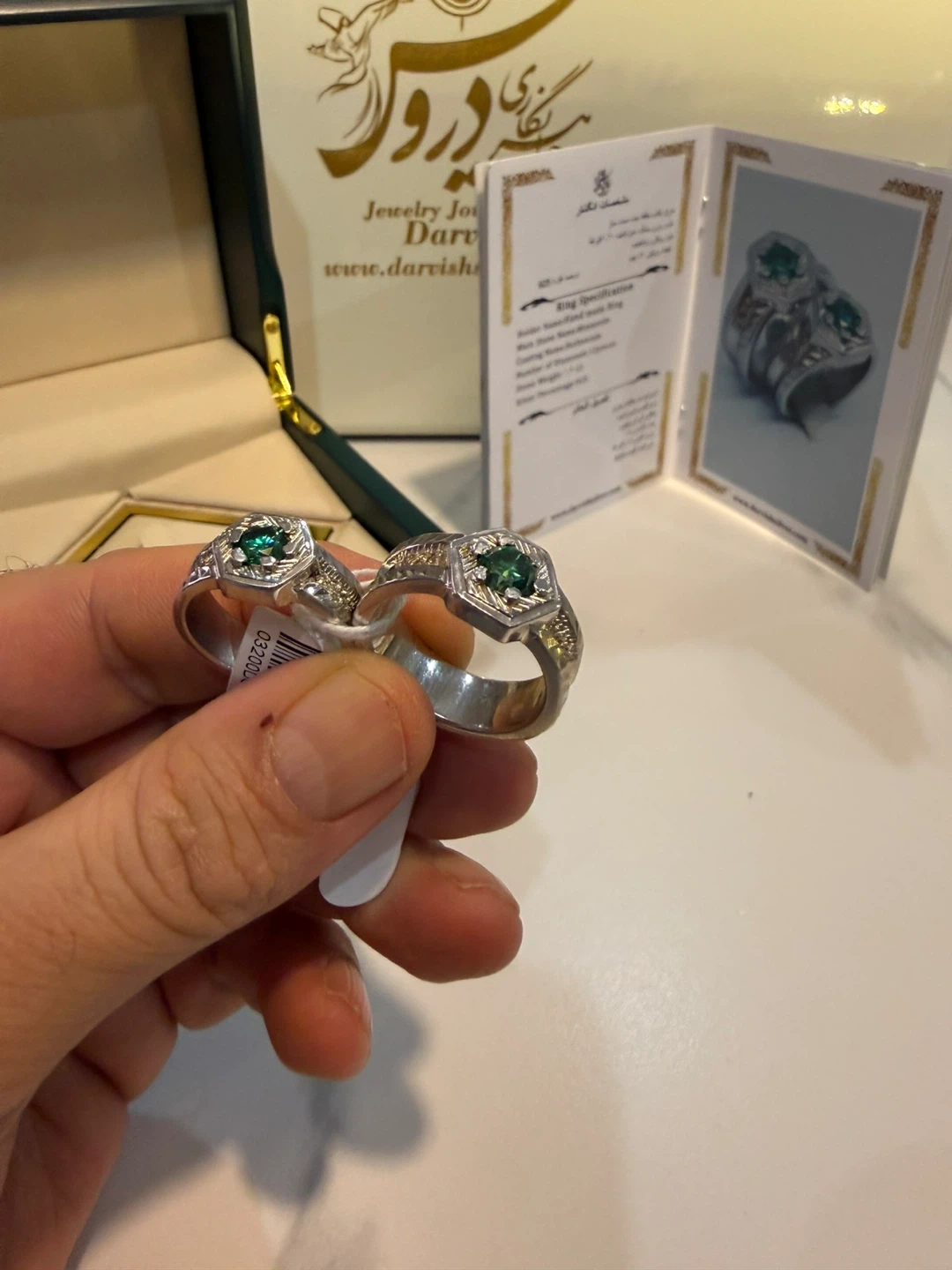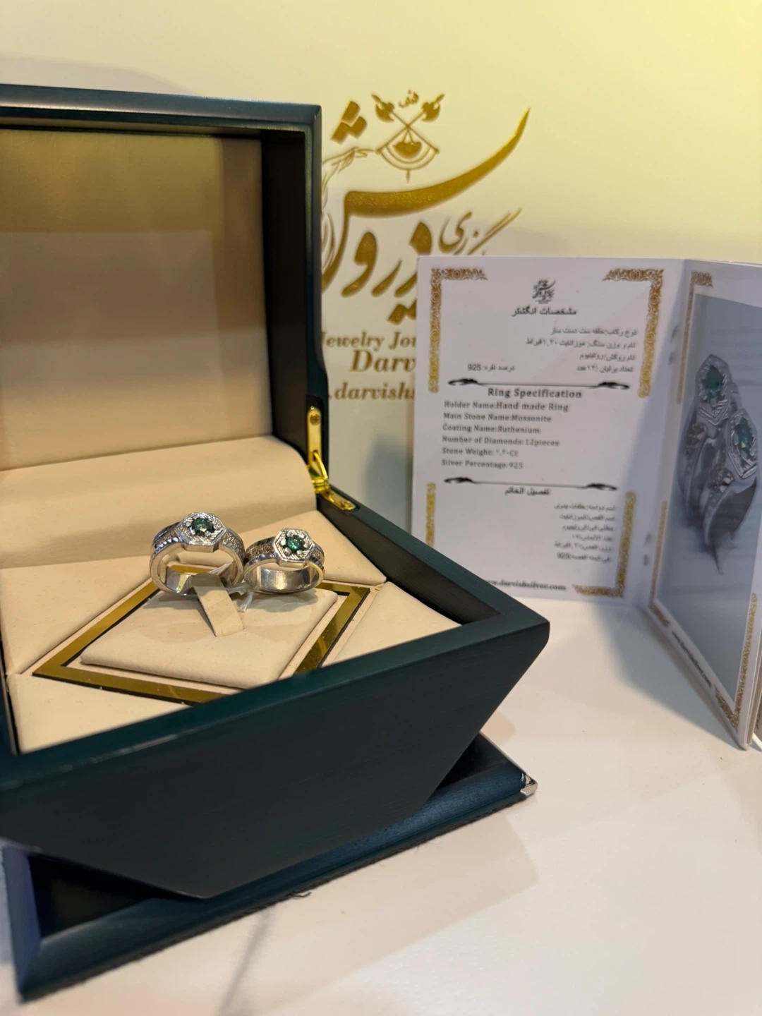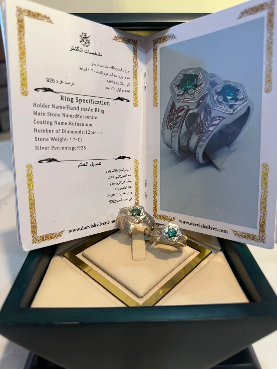 Selling a beautiful hand-made ring from Darvish Silver! The ring features a mossonite main stone and a ruthenium coating. It also has 12 diamonds! The silver percentage is 925