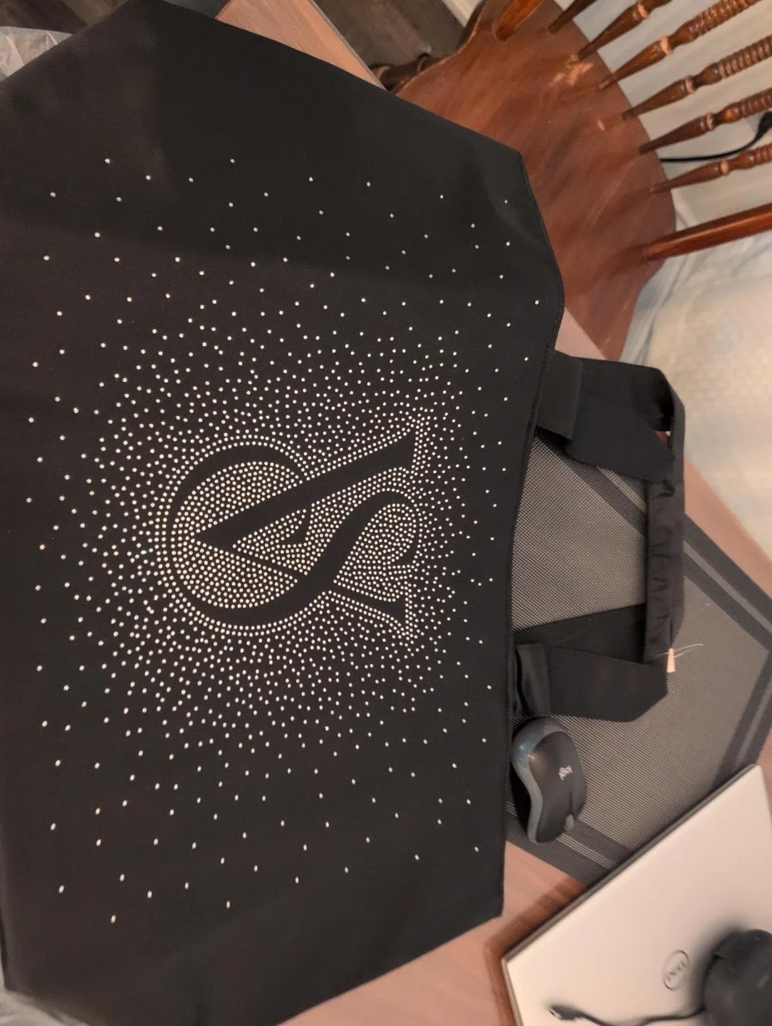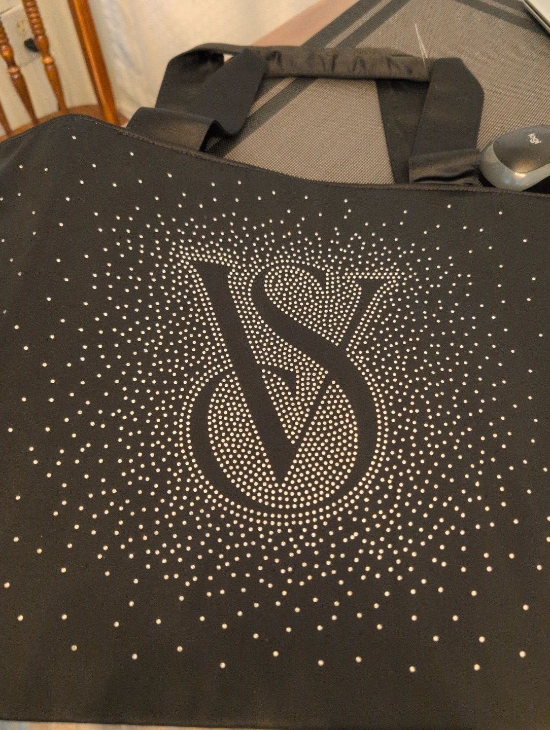 Selling a black tote bag from Victoria's Secret! It features a sparkly VS logo design. Perfect for carrying your essentials in style