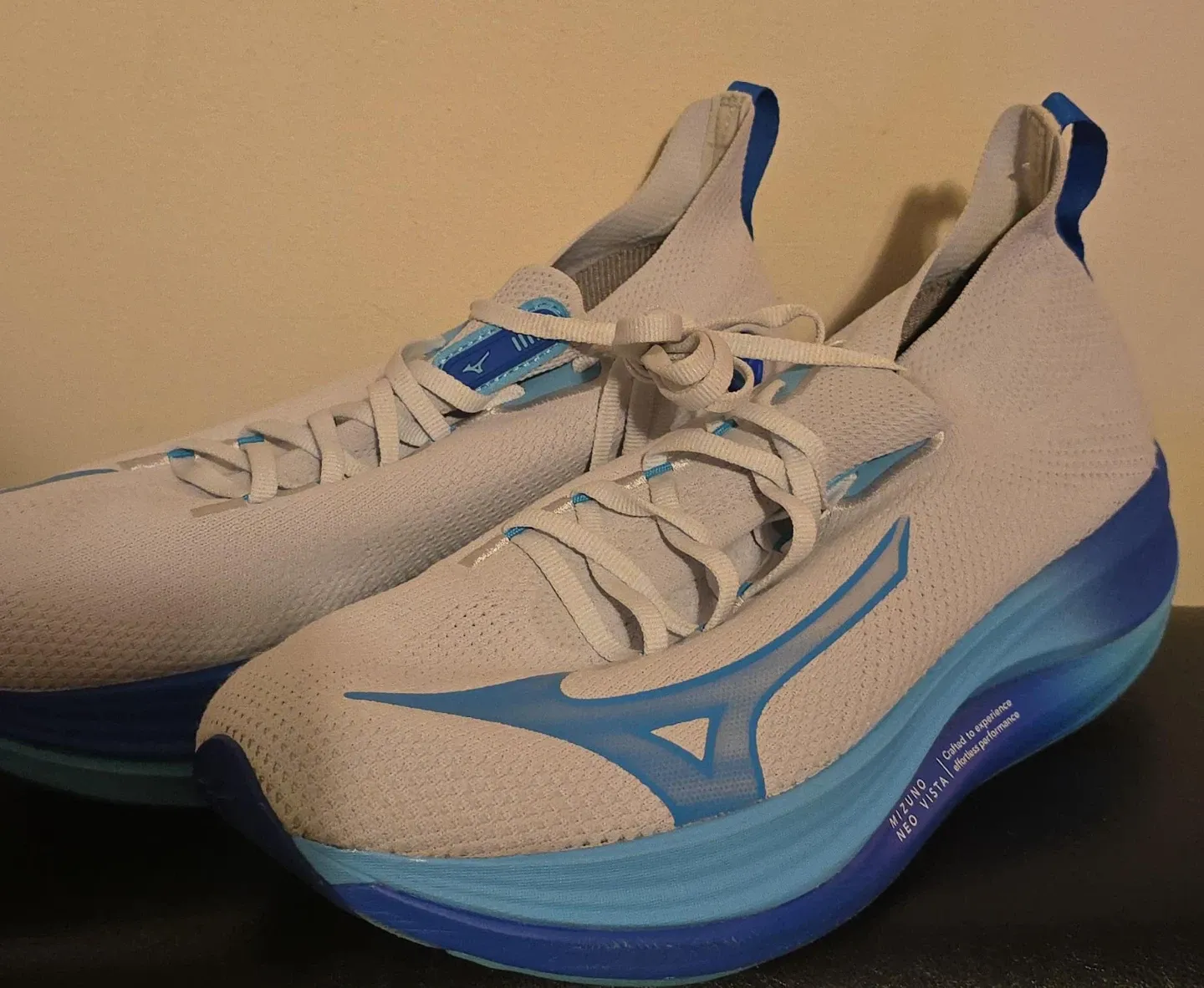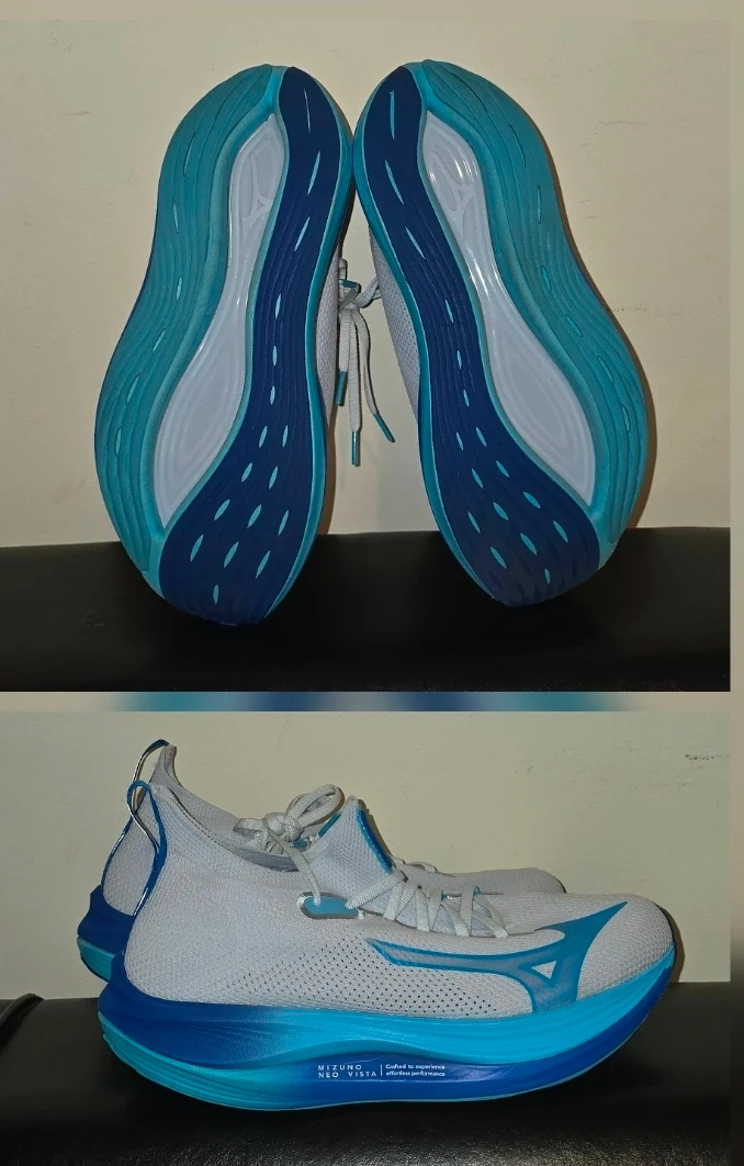Selling a pair of Mizuno Neo Vista running shoes. They are a size W11 or M9.5 and in great condition. Perfect for running. Slightly used. Washed.
