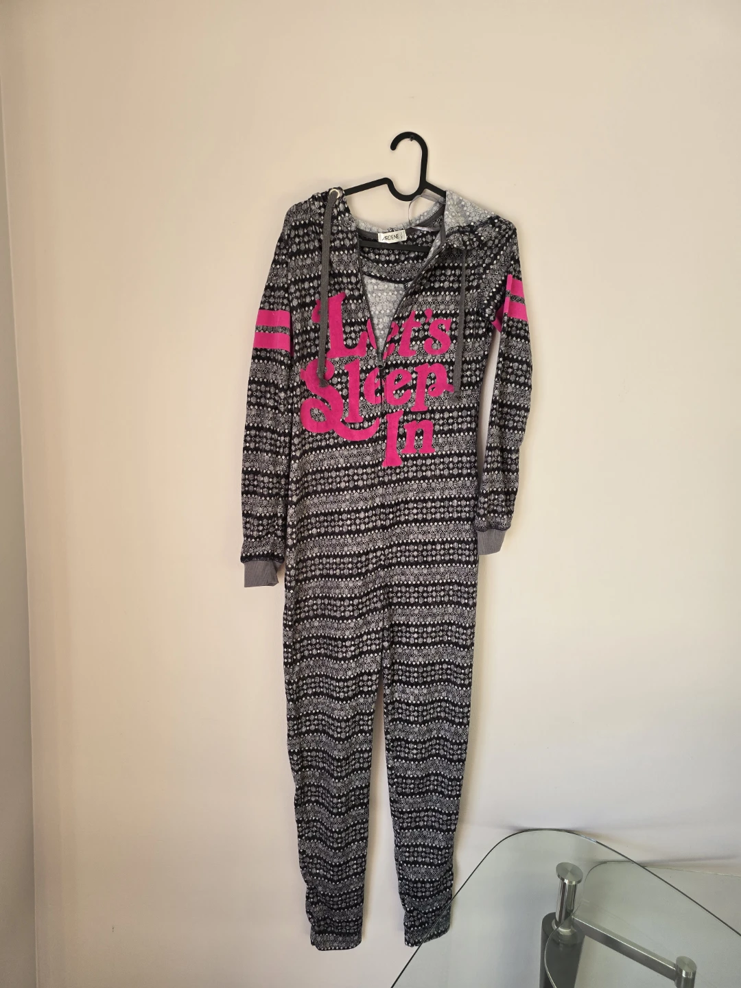 Cozy up in this adorable "Let's Sleep In" onesie! π΄ It's grey with a fun pattern and bright pink accents. π Perfect for those lazy weekend mornings! β #onesie #pattern #accents #mornings #holiday