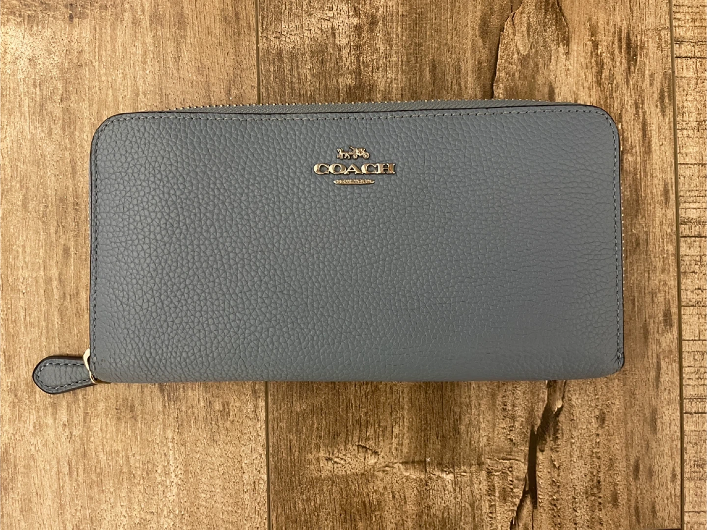 Coach Light Blue Leather Wallet ⚠️ inner zipper BROKEN