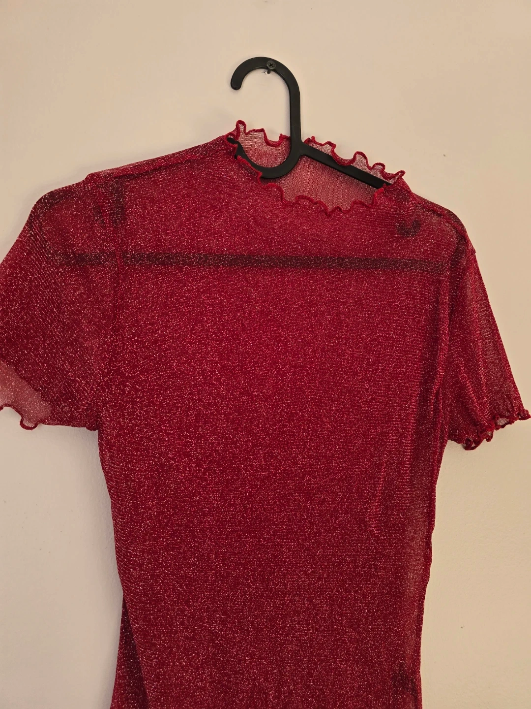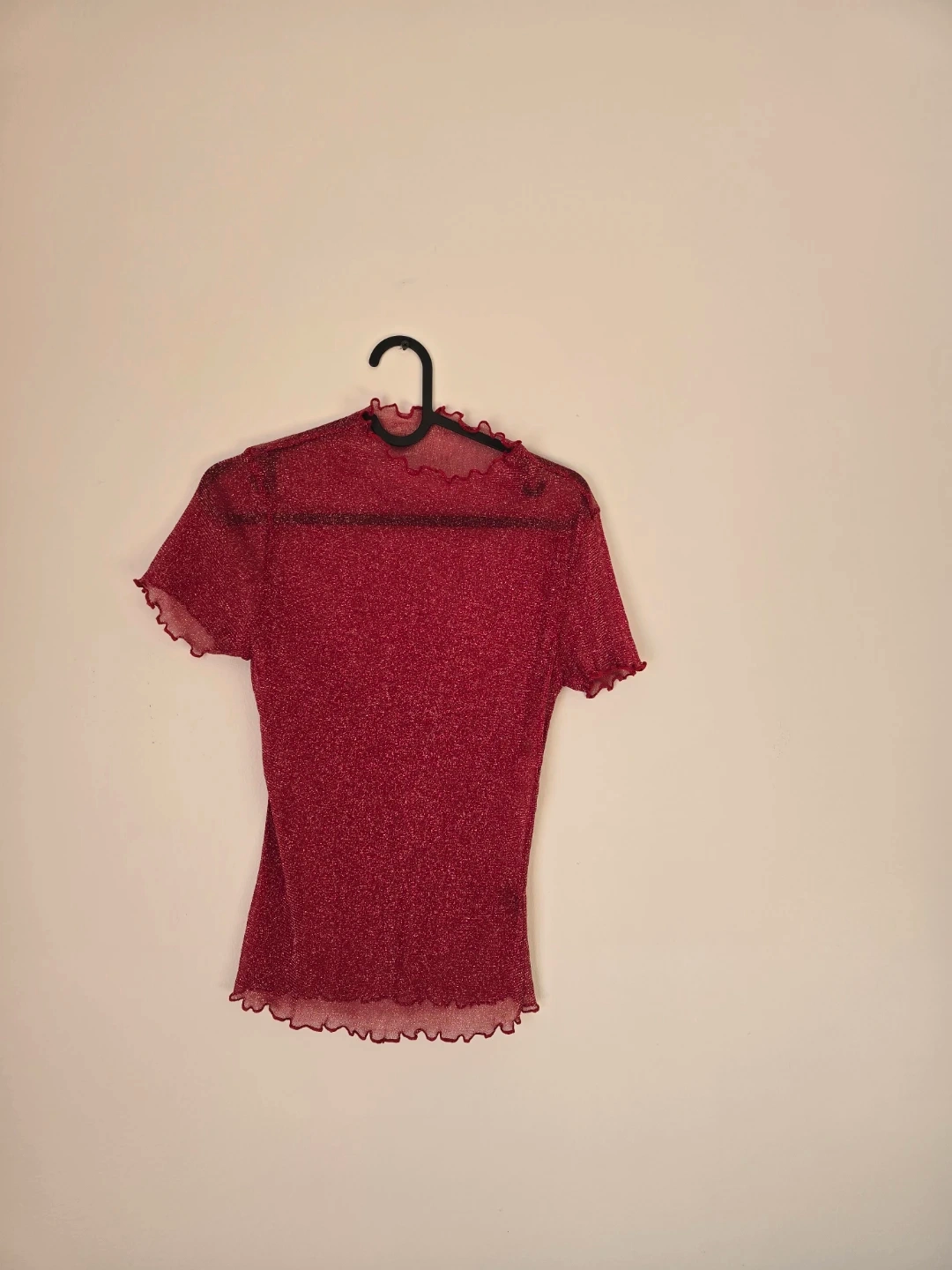 Selling a cute red sparkly mesh top! β¨ It's perfect for adding a bit of shimmer to your outfit. The material is lightweight and breathable, great for layering or wearing on its own. It's in great condition, ready for a new home! π #top #sparkle #mesh #outfit #shimmer #material #layering #home #Christmas