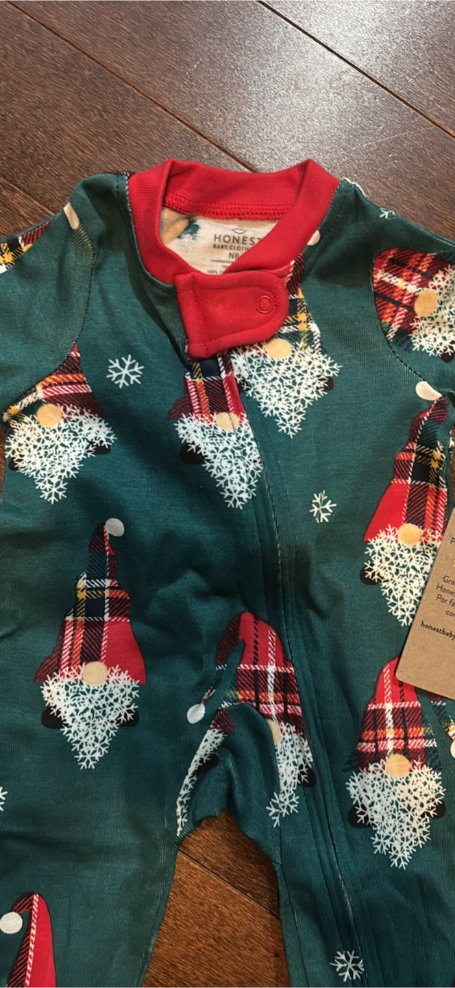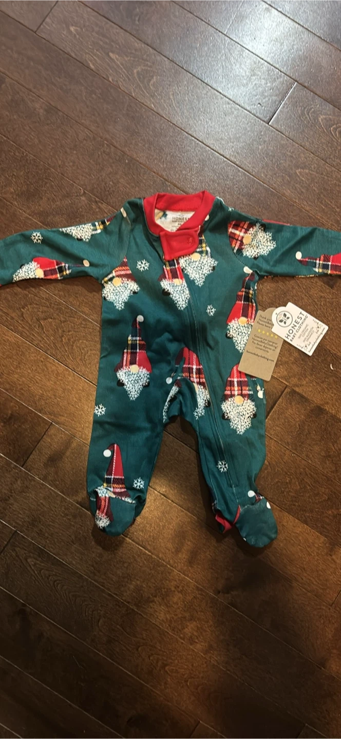 Check out these super cute Honest Baby Clothing footed pajamas! They feature an adorable gnome pattern on a green background. Perfect for keeping your little one cozy and warm during the colder months