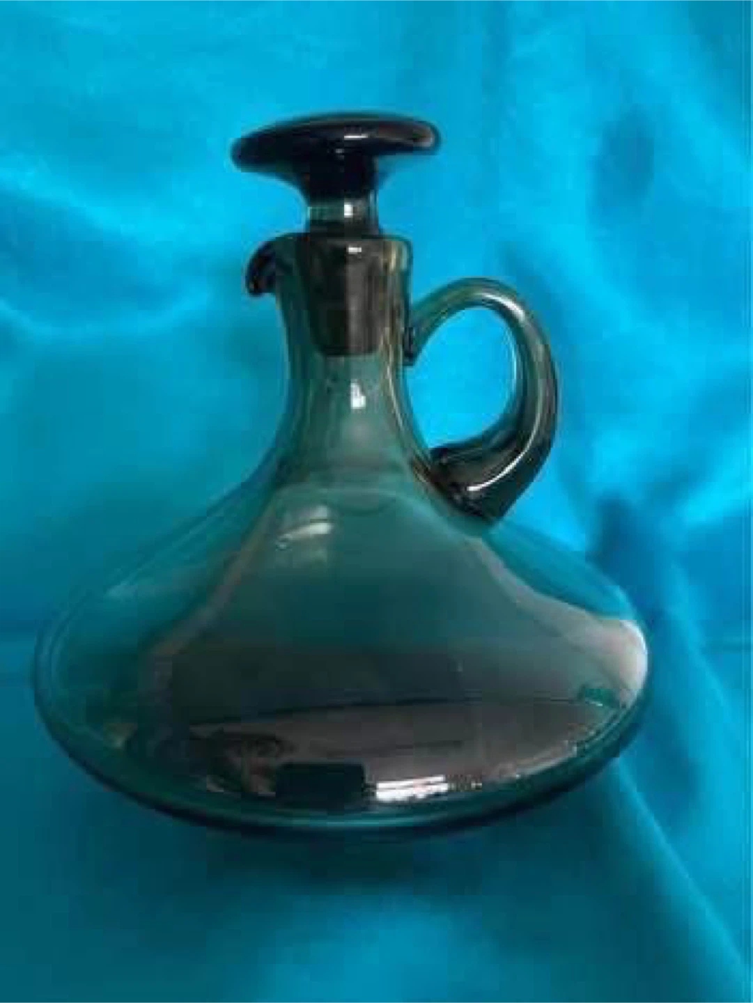 Beautiful vintage decanter. Dark smoke glass. Features a small handle and a fitted stopper. Perfect for serving or as a decorative piece.