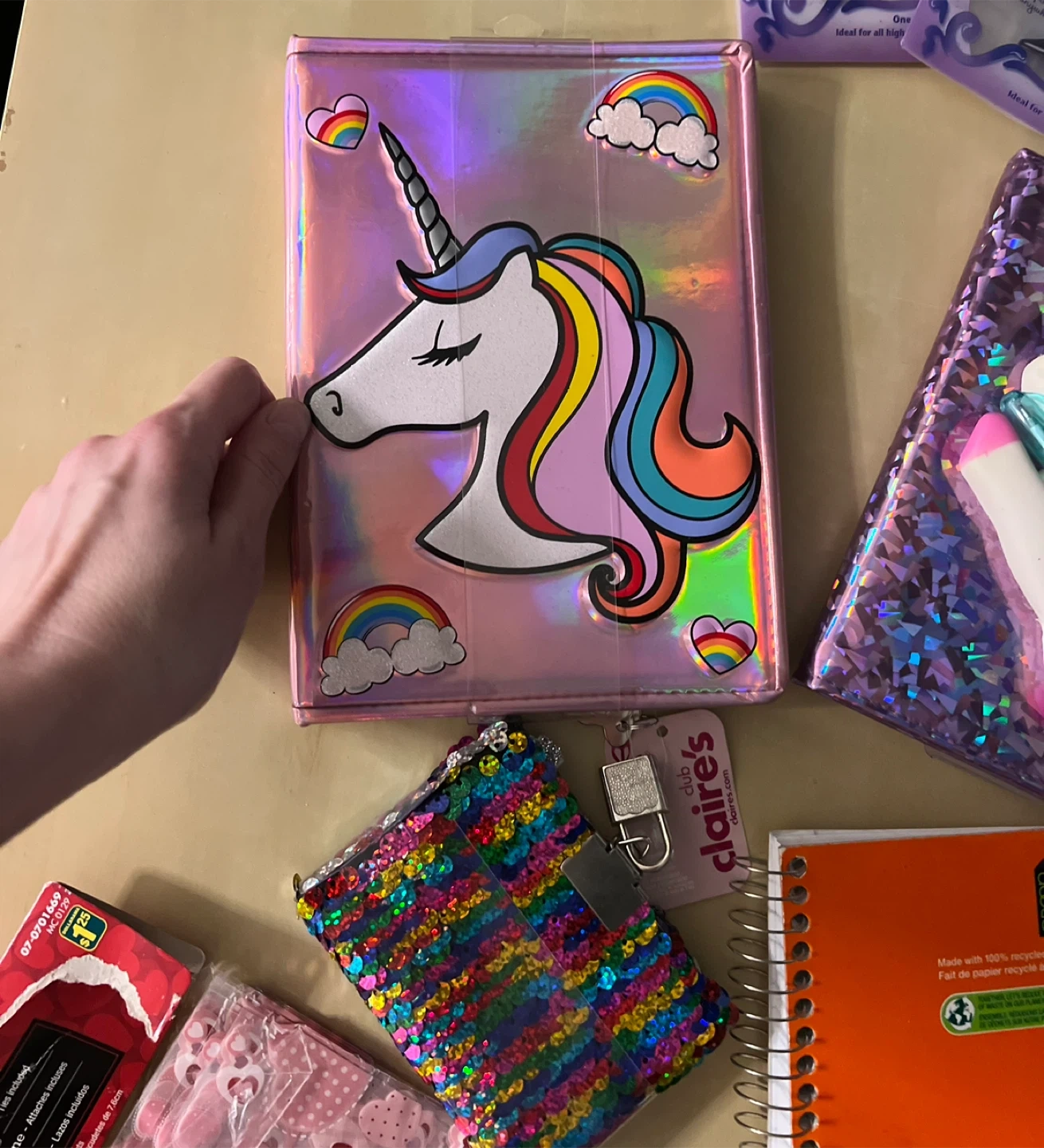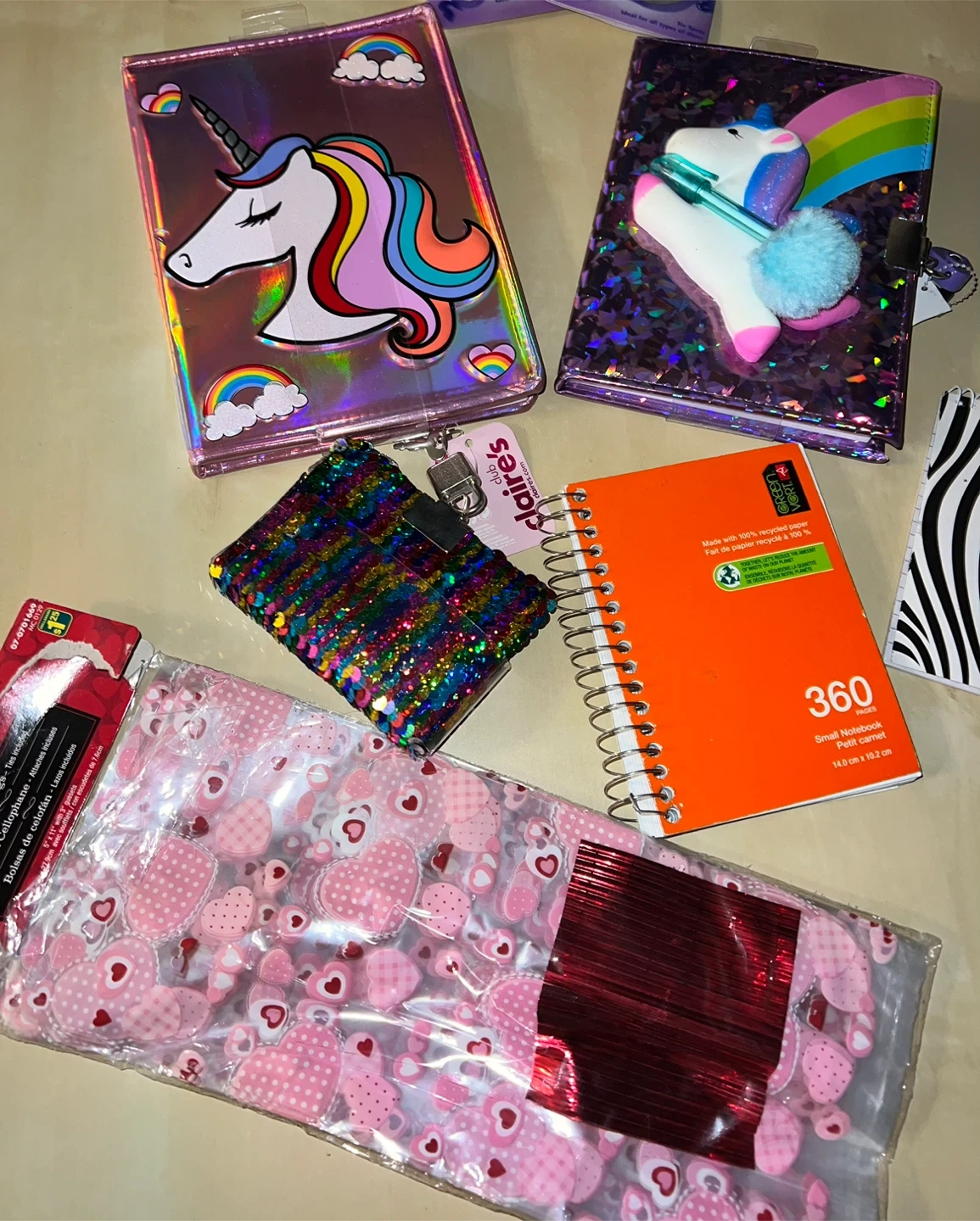 I was organizing my stuff and these 3 notebooks are new I never use them. Prices for them originally 25$, 12$ and 21$. super cute, it’s from Clair’s.
