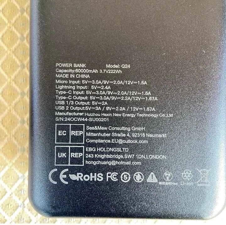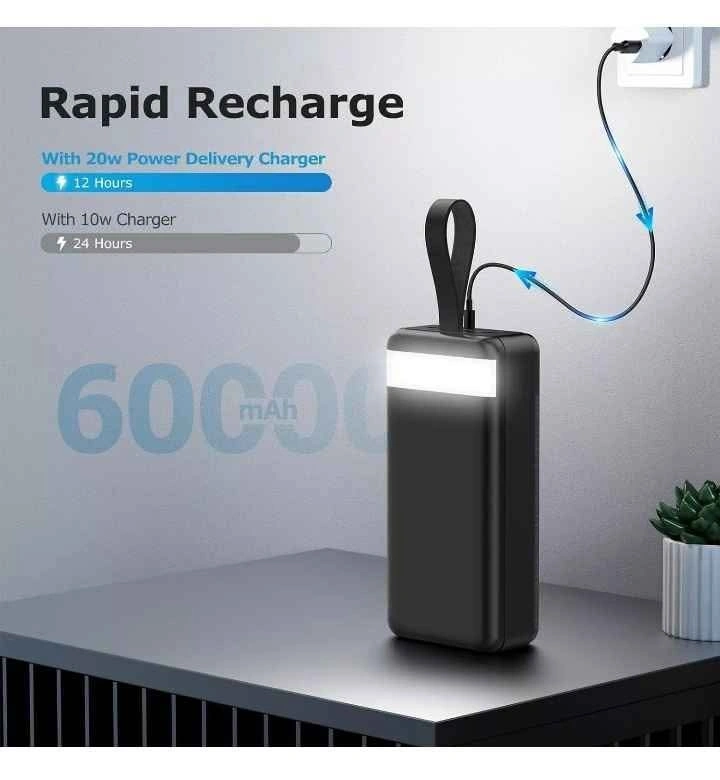 Cargador portátil Banco de energía 60000mAh carga rápida 22.5W PD4.0 y QC 4.0 con cargador de batería USB C cargador portátil de alta capacidad cargador de teléfono portátil Banco de energía