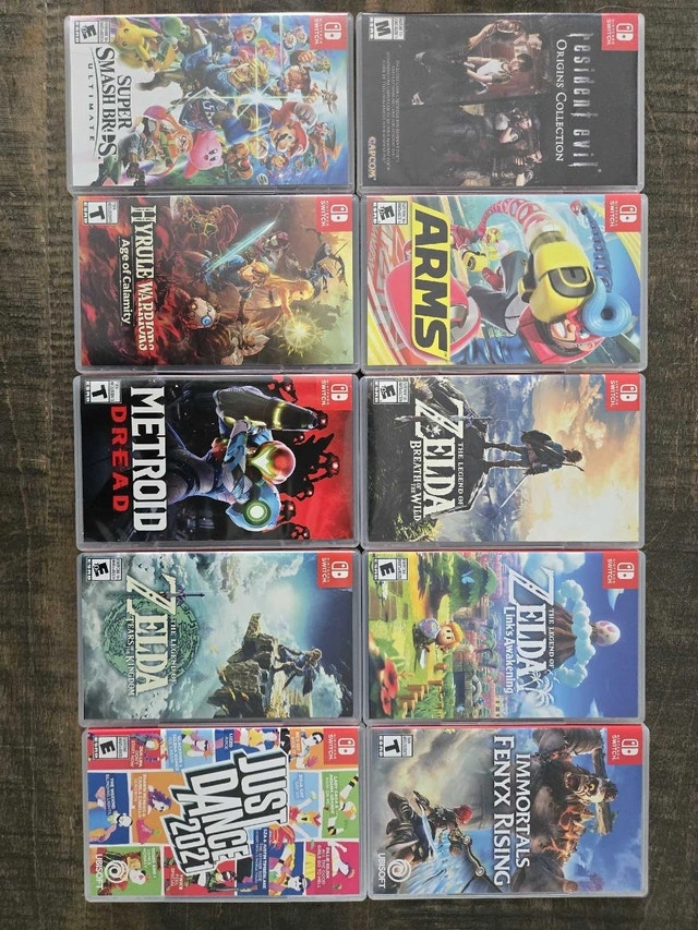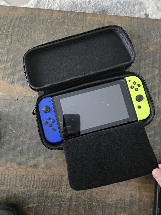 Nintendo Switch with 18 games and accessories, all in perfect condition. The bubbles on the screen are because of the screen protector. Included: