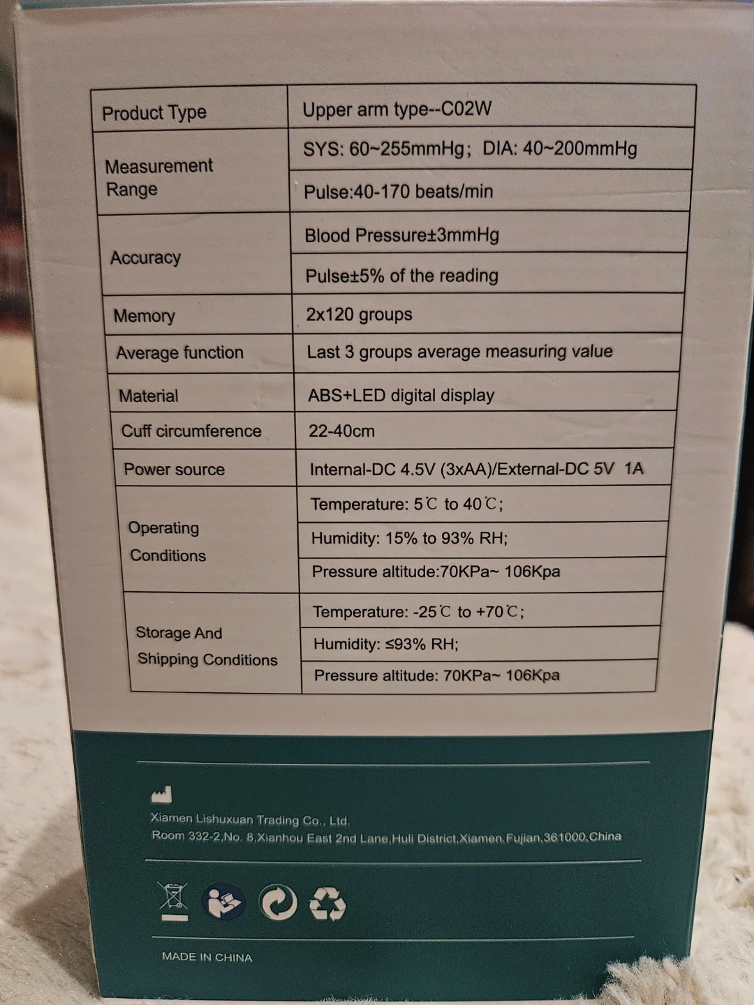 - Measurement range: SYS: 60-255mmHg; DIA: 40-200mmHg; Pulse: 40-170 beats/min