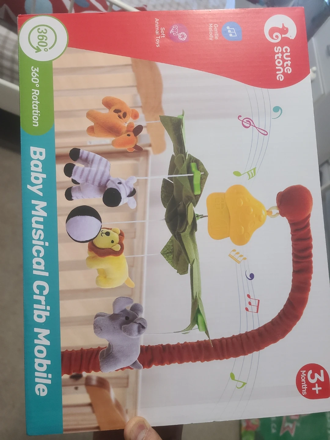 Here's a Cute Stone baby musical crib mobile, perfect for little ones! It features a gentle melody and soft animal toys for visual and auditory stimulation. The mobile rotates 360 degrees for added interest for your baby.