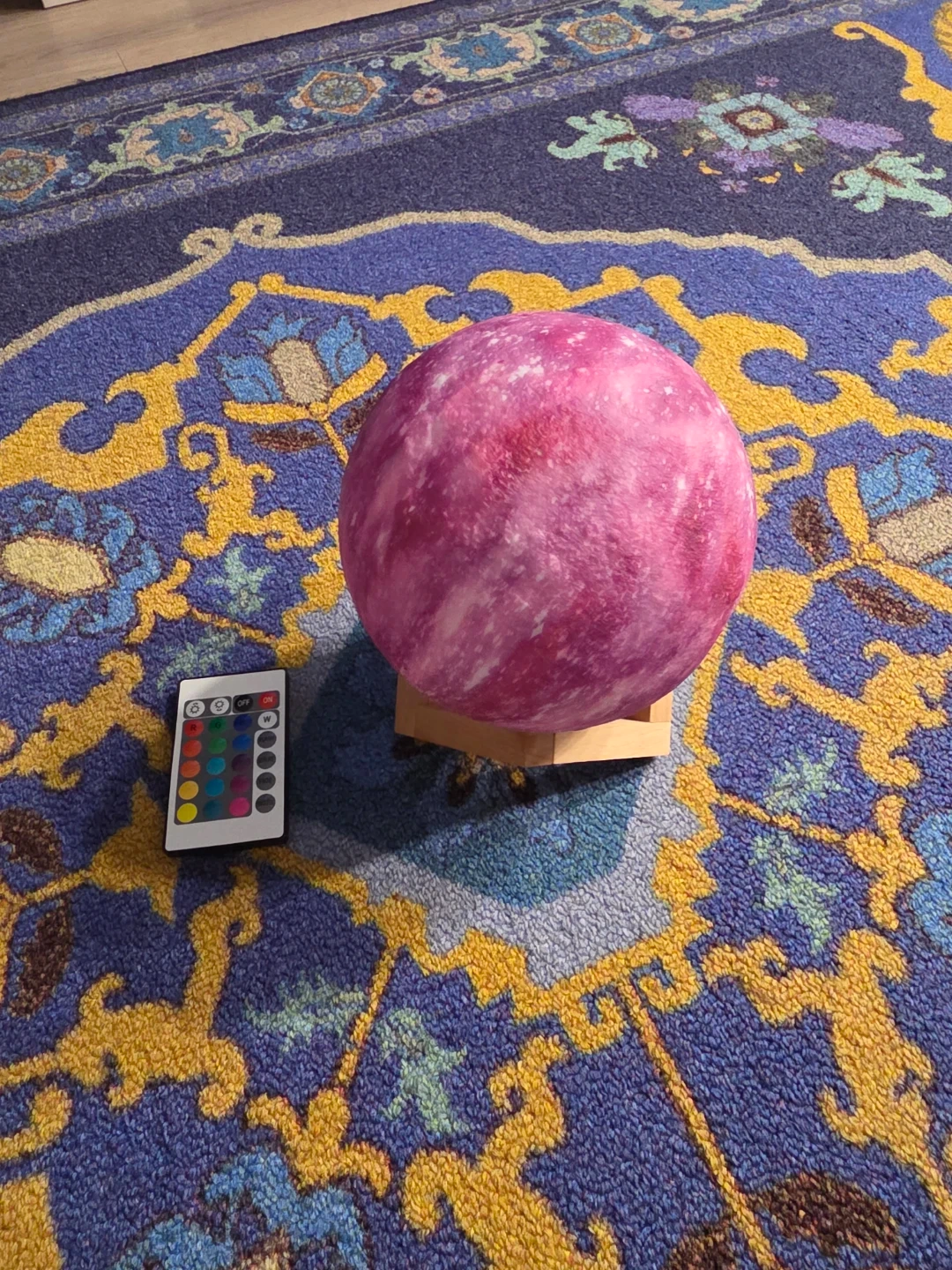 Selling a cute pink moon lamp. Hanged colours! It comes with a remote control to change the colours and brightness. It's in great condition and ready to brighten up any room