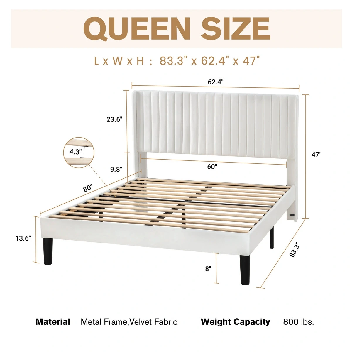 Queen Size White Velvet Bed Frame