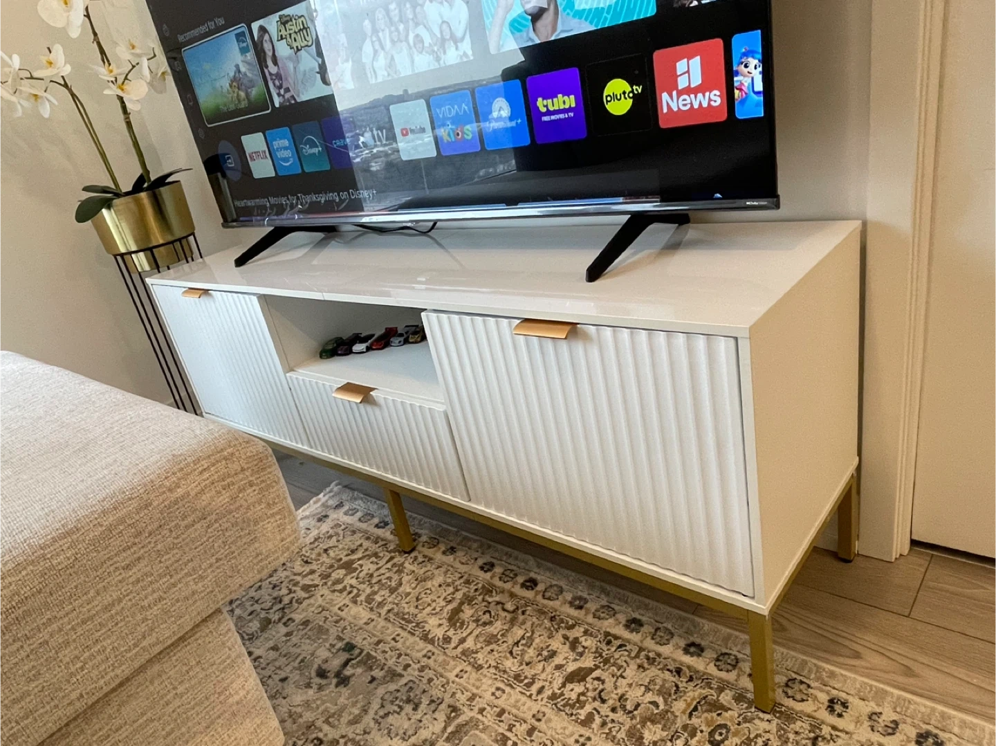 Hisense 55" 4k TV , White & Gold TV Stand