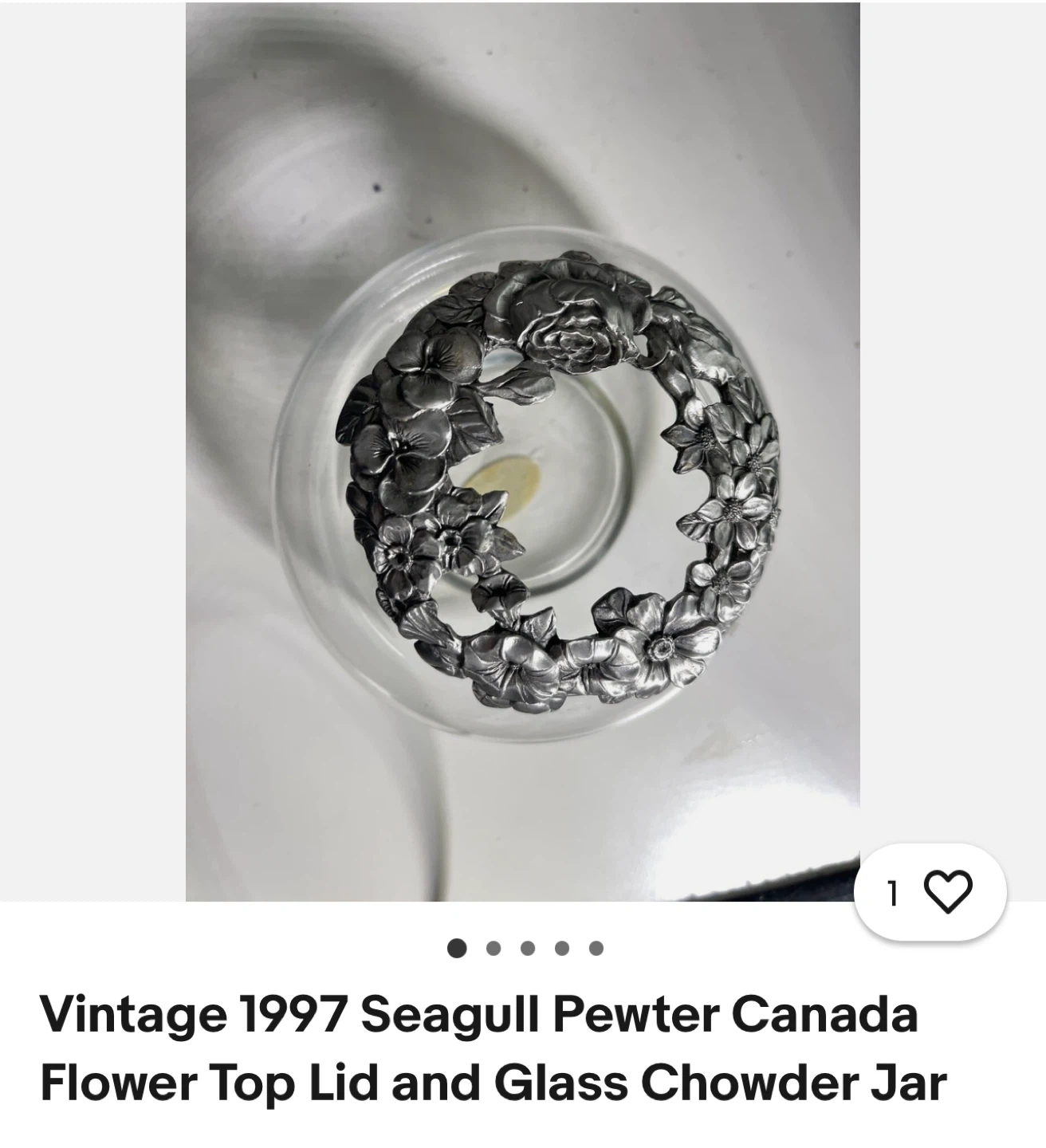 Vintage 1997 Seagull Canada Pewter Flower Lid