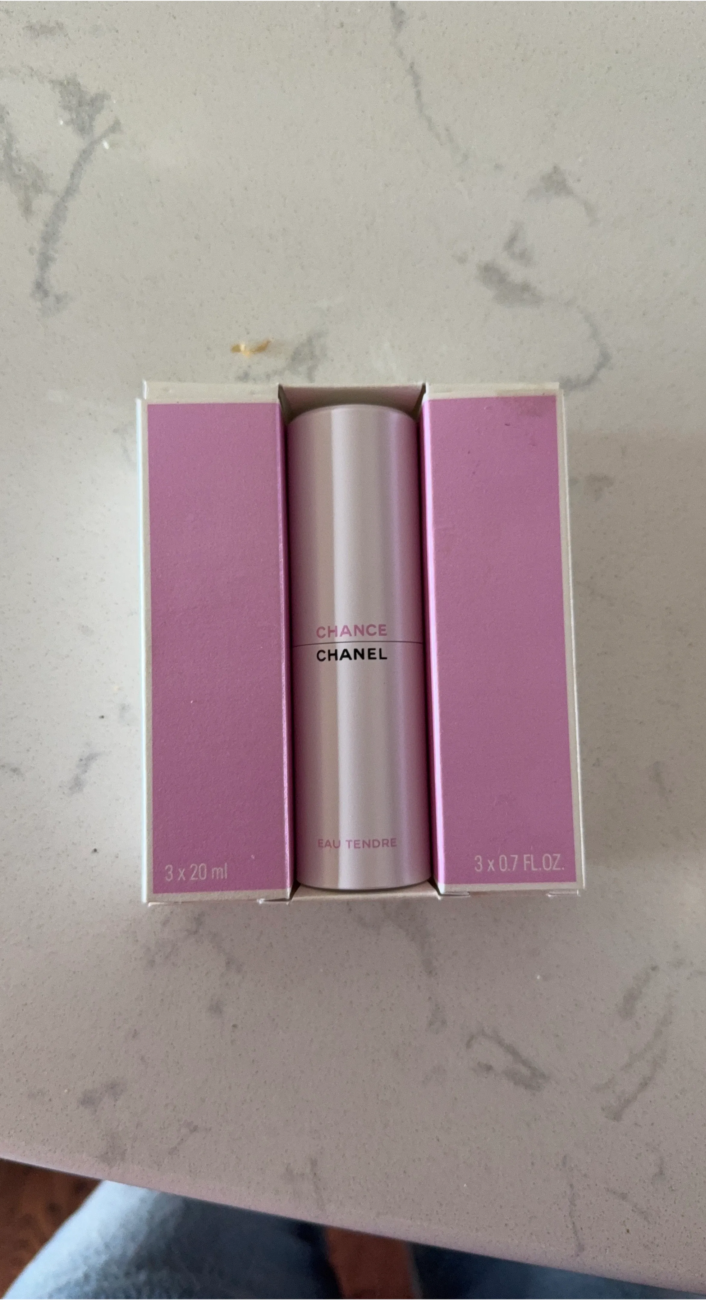 Selling a barely spent Chanel Chance Eau Tendre Twist and Spray! This set comes with atomizer and 3 x 20ml (3 x 0.7 fl.oz) refills and the original box (minus the plastic wrap.) It's perfect for on-the-go use and keeping your favourite scent with you!