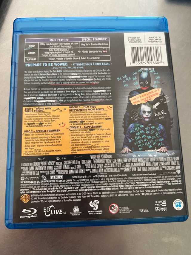 1 / 51 / 5Buy & SellThe Dark Knight & TDK Rises (Blue-Ray)The Dark Knight & TDK Rises (Blue-Ray)$30The Dark Knight The Dark Knight Rises. Excellent, clean and no damage. Thank youWHERE TO MEETCheck LocationView MapSELLERRobertBayview Village493 reviews0 chats·1 favorites·6 viewsSEND CHAT TO SELLERHi Robert! I’m interested in your listing.Hi Robert! I’m interested in your listing.Get the Karrot app to chatSign In to chat