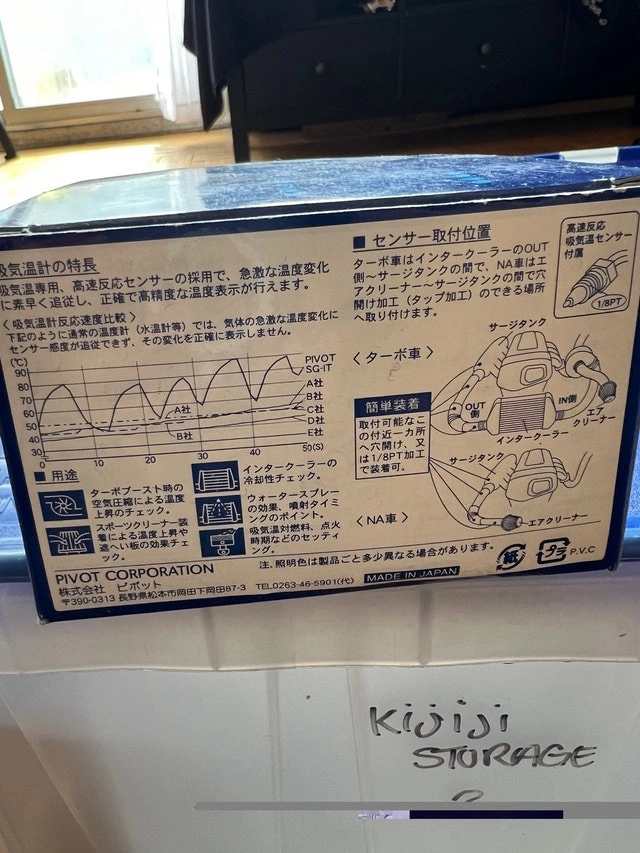 Divot Intake Temp Gauge for air filter bank (engine bay). It's excellent work but it's an old model from 15 years ago. Made in Japan. Value $259 cdn. Thank you.