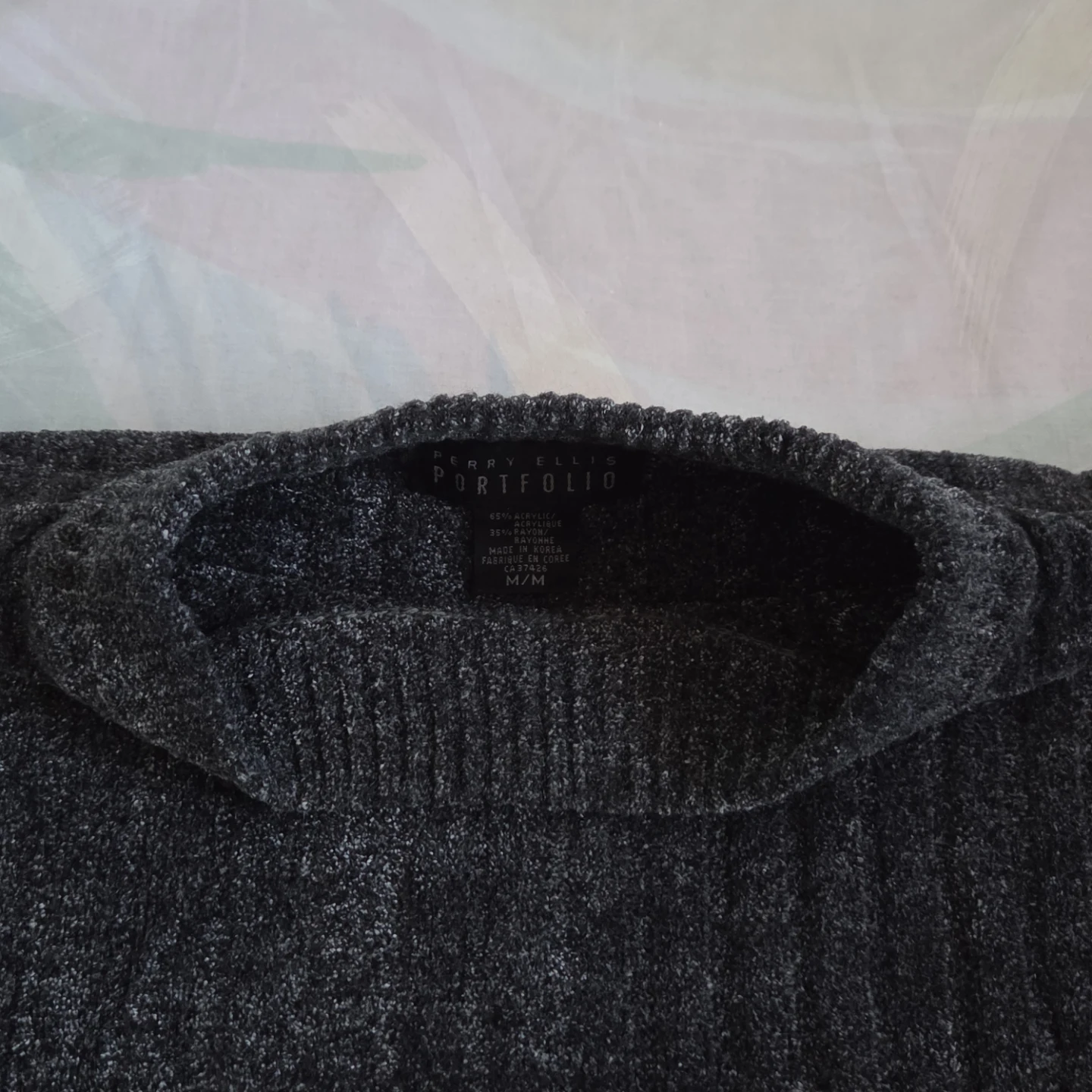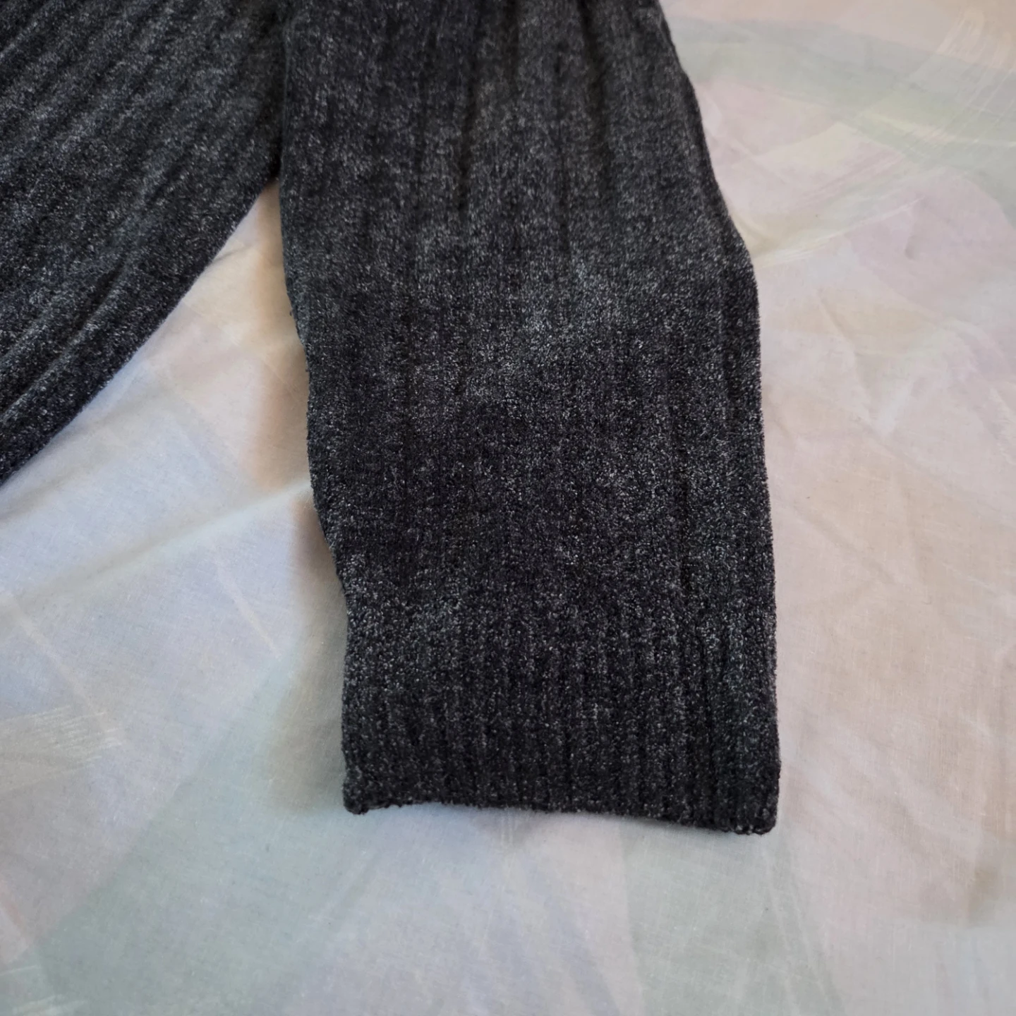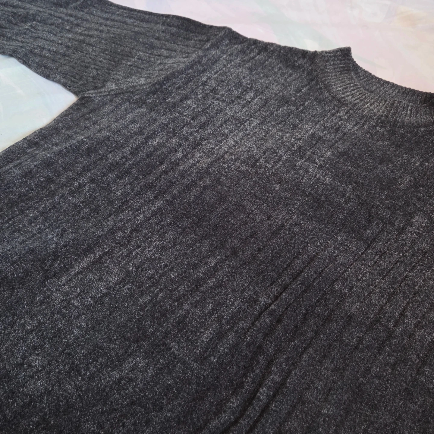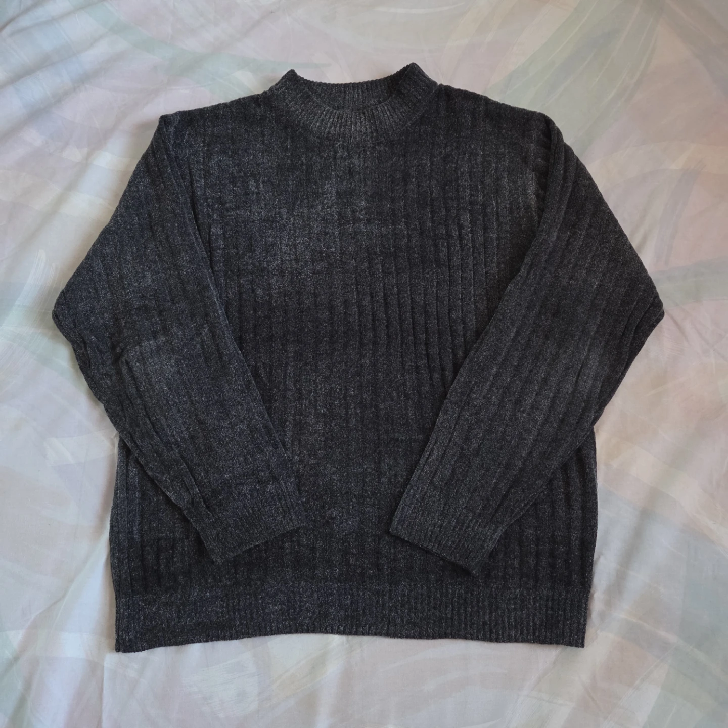 Selling a cozy, dark grey mock neck sweater
