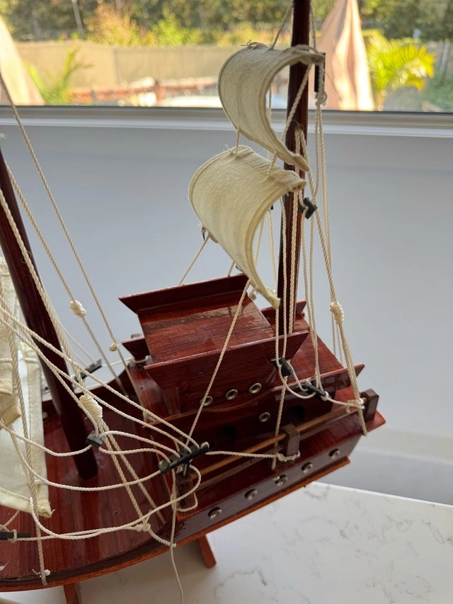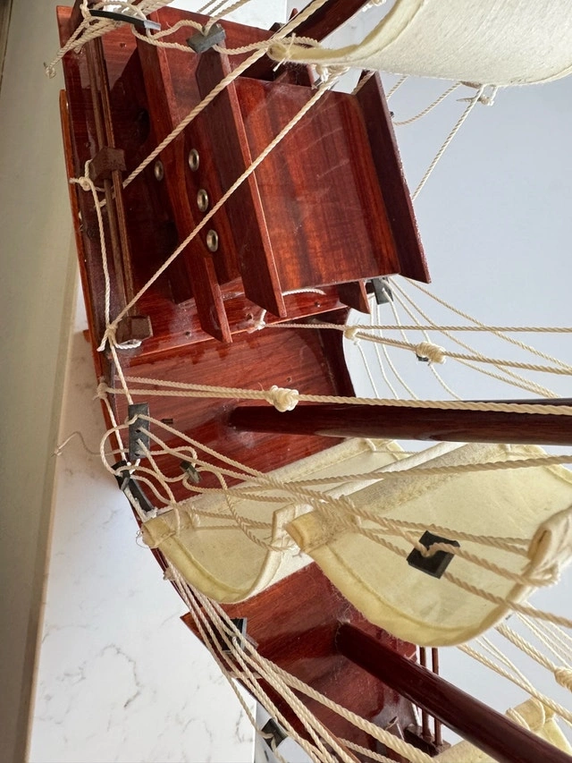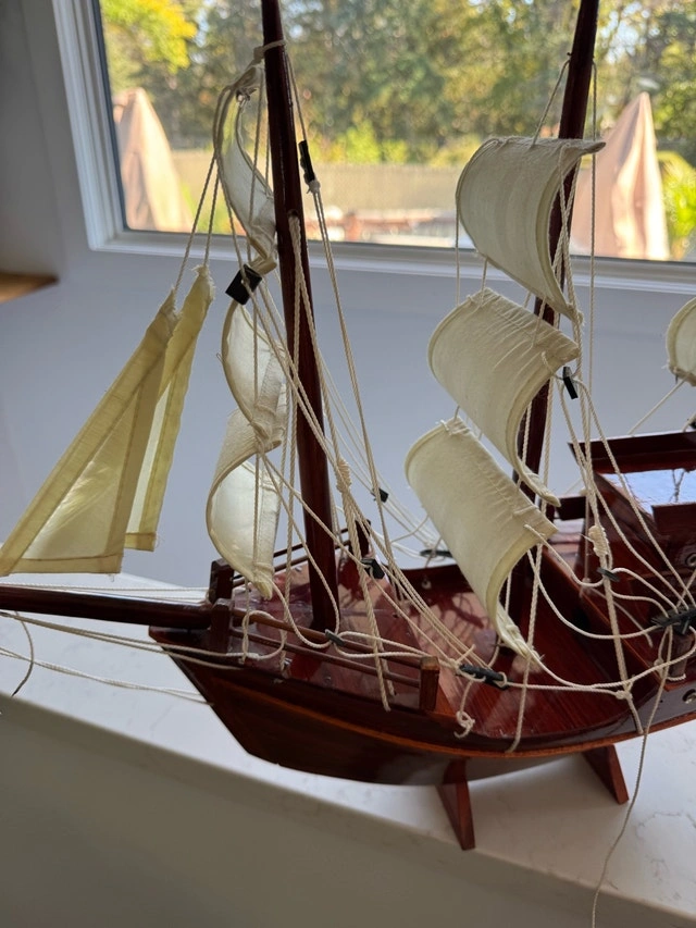 Wood ship model. Has been in storage so some “rope” need to be adjusted and needs a thorough cleaning. Otherwise structure in good condition. Approx 20” long x 16” tall. Pick up in St vital near Avalon and River.