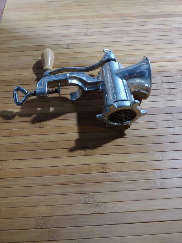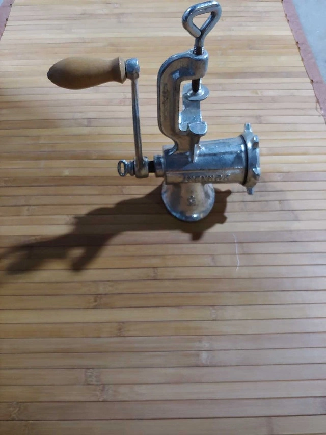 I'm offering a never used, old school meat grinder with a sturdy, clamp-on design. Perfect for the home chef or vintage kitchen collector, this grinder is in excellent condition and ready to use. Its classic design adds a touch of nostalgia to any kitchen. It is a charming piece to add to your cooking collections! Just a friendly heads-up: If you're seeing this ad, the meat grinder is still up for grabs!