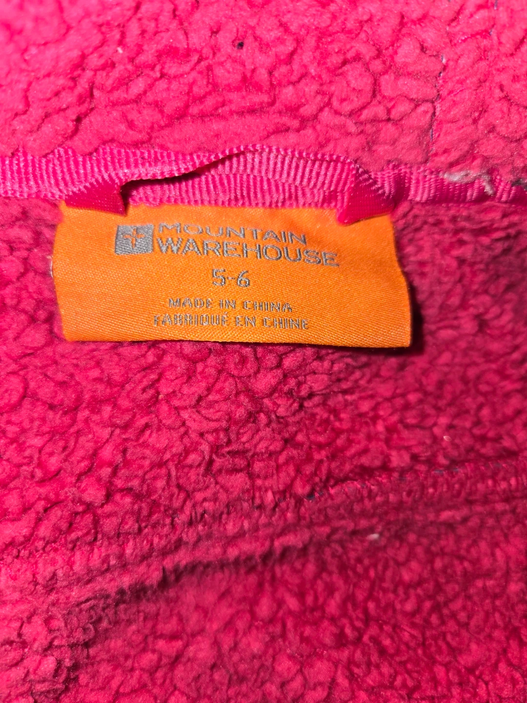 A cute jacket for your little one! This Mountain Warehouse jacket is size 5-6 and features a fun triangle pattern on the outside and a cozy hot pink fleece lining inside. Perfect for keeping warm on cooler days