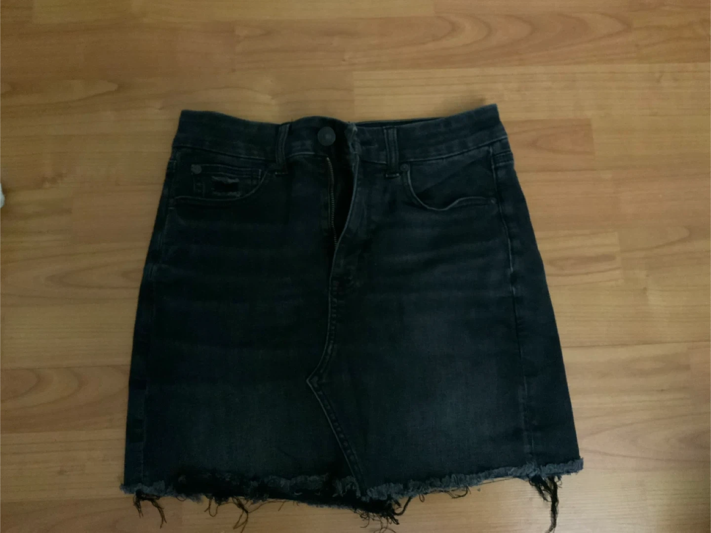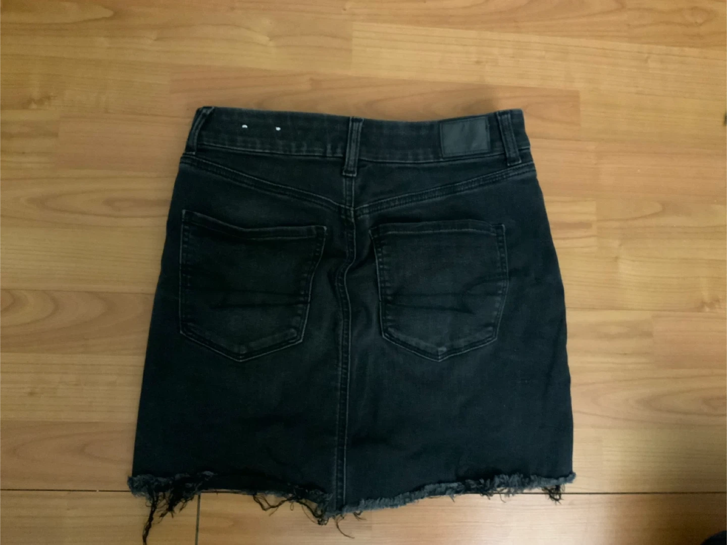 Selling a cute American Eagle denim mini skirt in a dark wash! It's a size 4 and has a trendy frayed hem. Perfect for casual outings or dressing up!