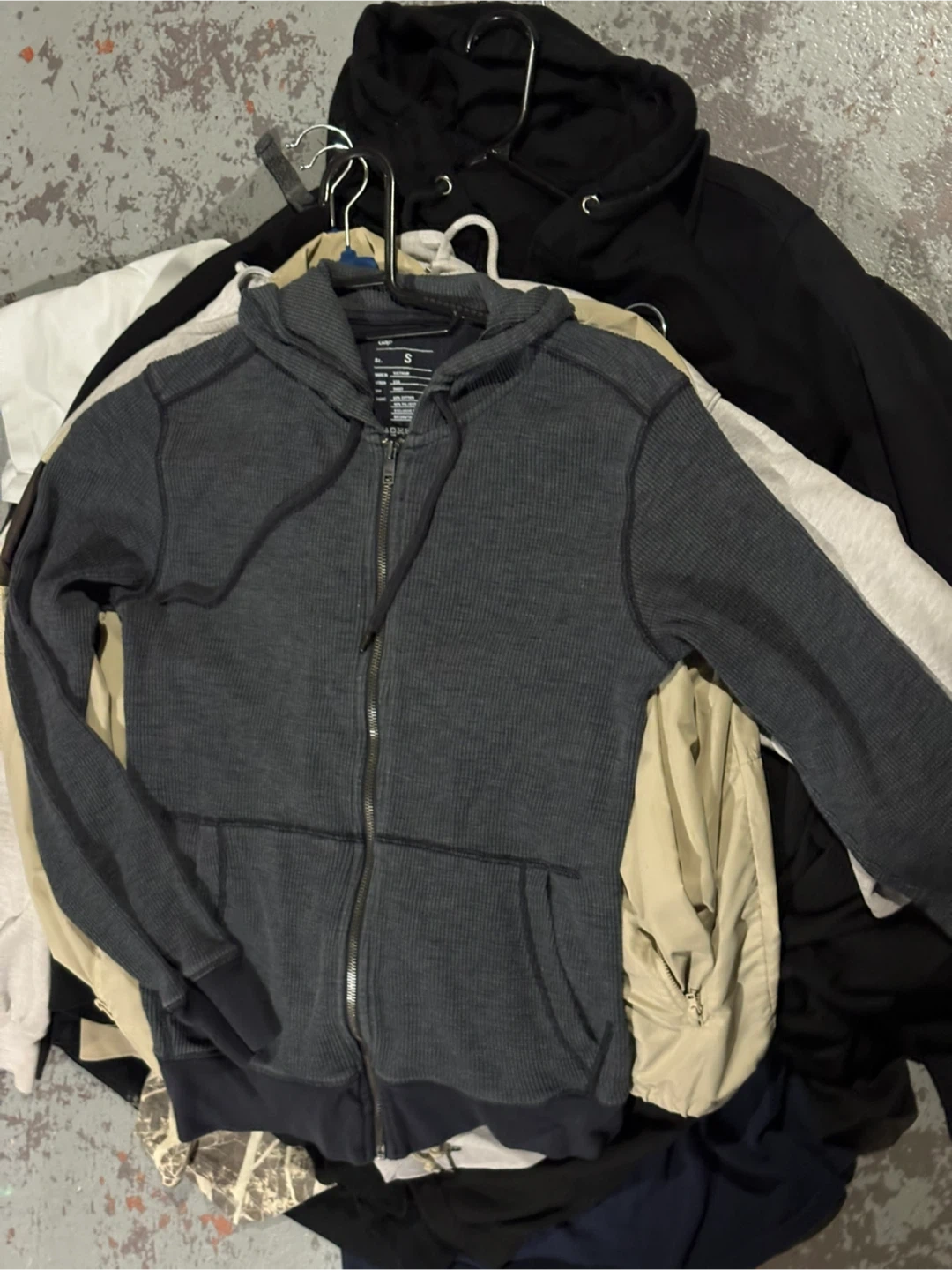 Selling a Gap zip-up hoodie in grey! It's a size small and in great condition. Perfect for layering or wearing on its own. It has a full zipper and a comfortable fit