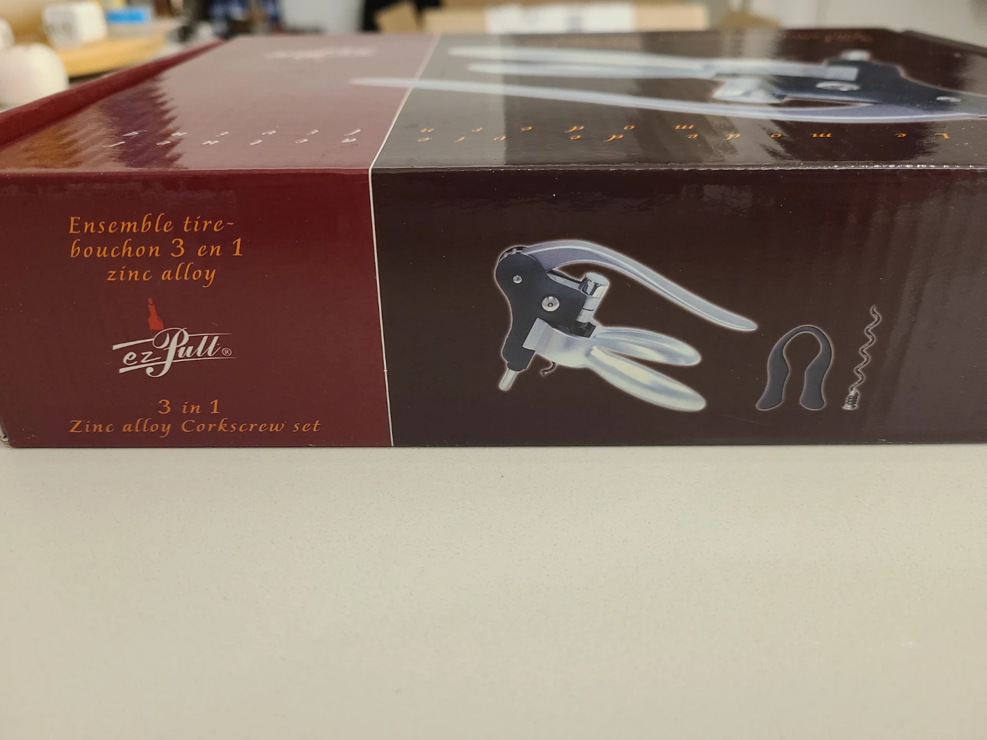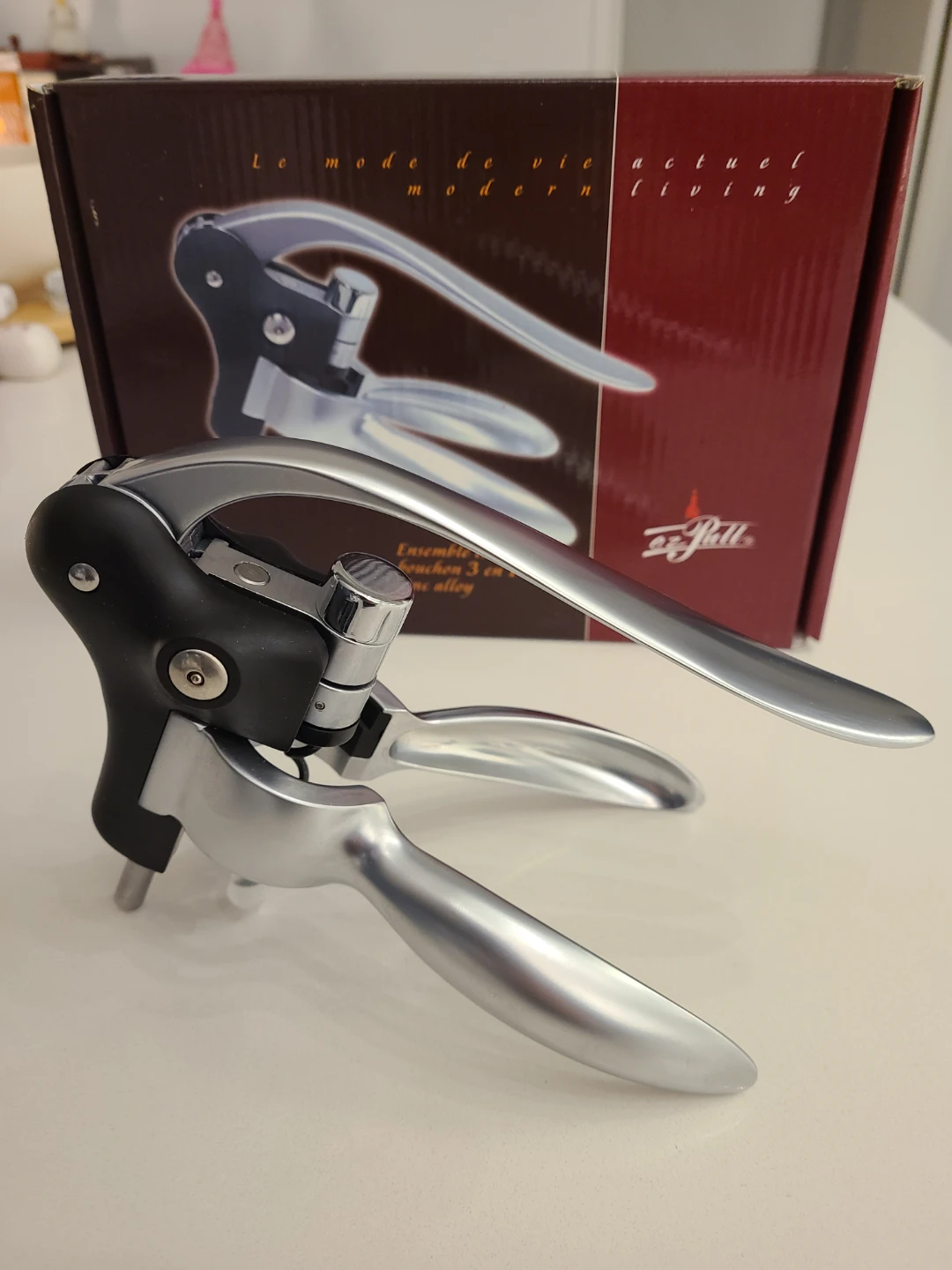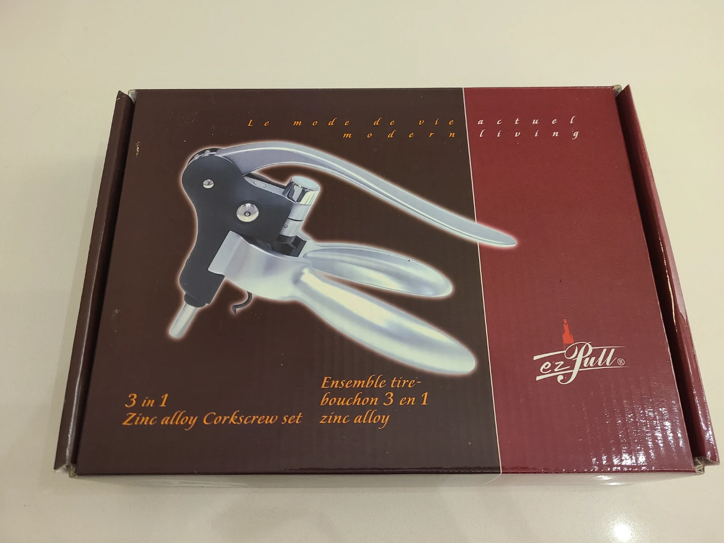 This is a new Ez-Pull 3 in 1 zinc alloy corkscrew set, perfect for any wine enthusiast looking to add a touch of modern living to their home!