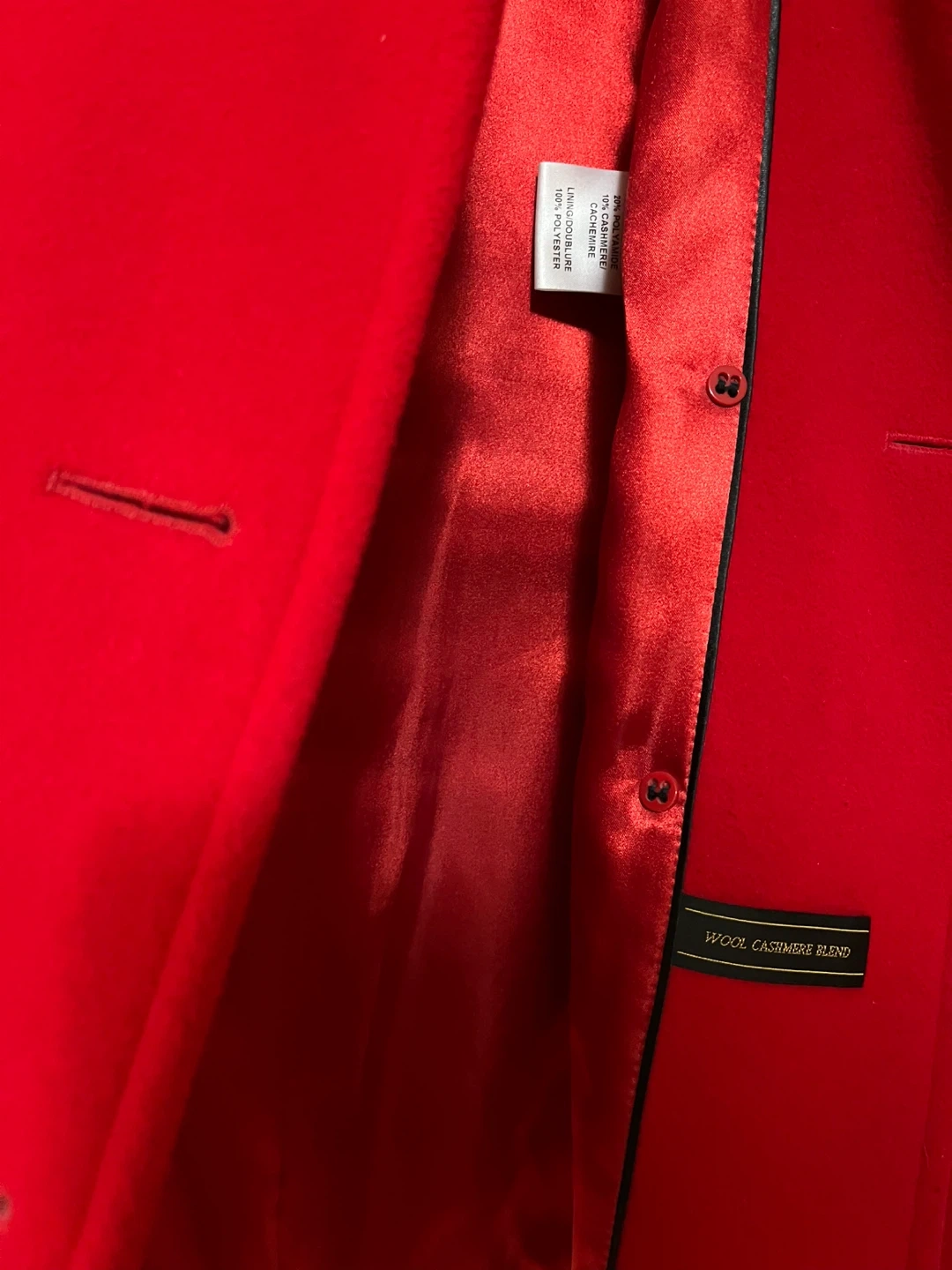 Wool blend & Cashmere - features a double-breasted design with black buttons