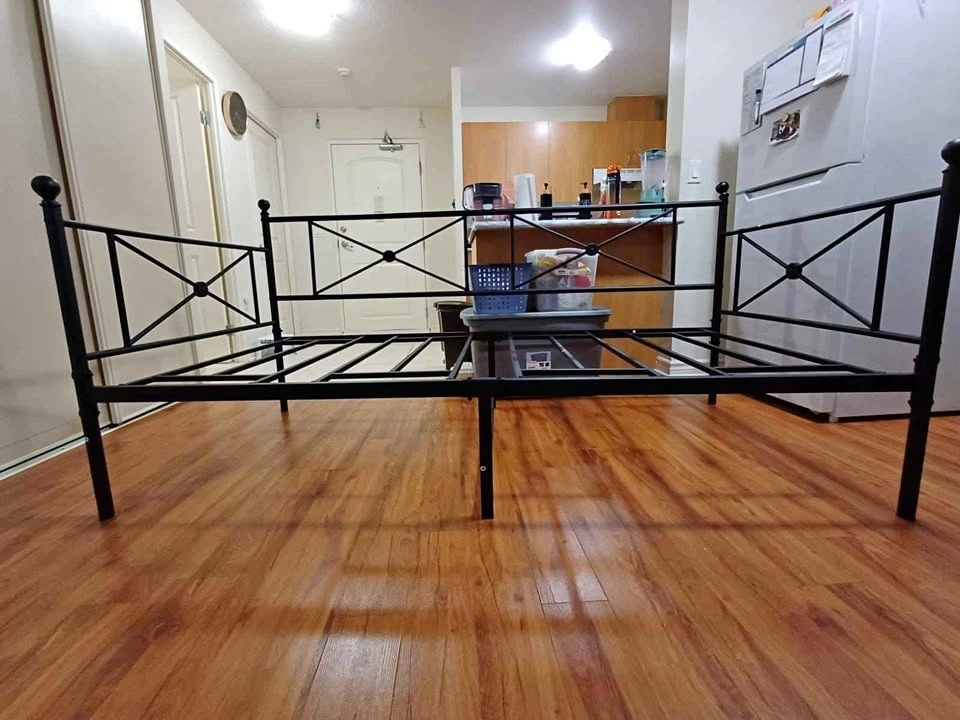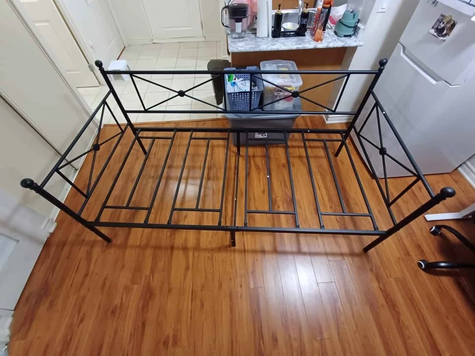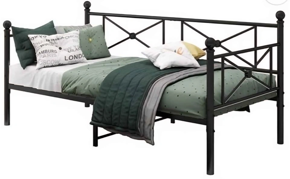 Sturdy black metal daybed/bed frame with a sleek, modern design. Can be used as a bed, sofa, or guest daybed, making it perfect for apartments, bedrooms, or living spaces.