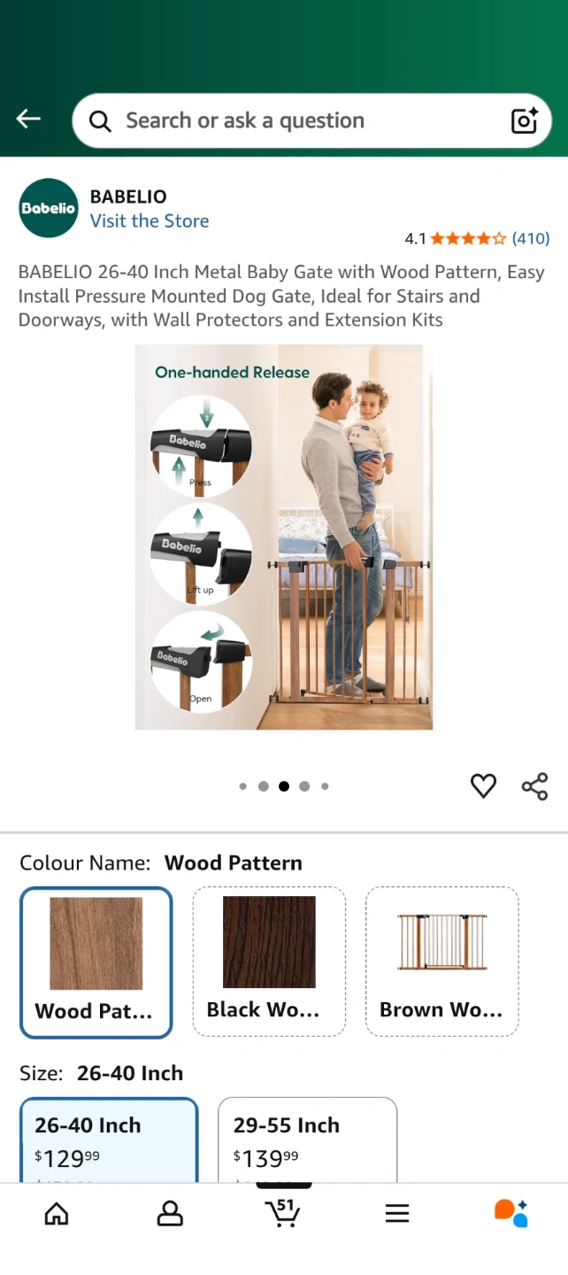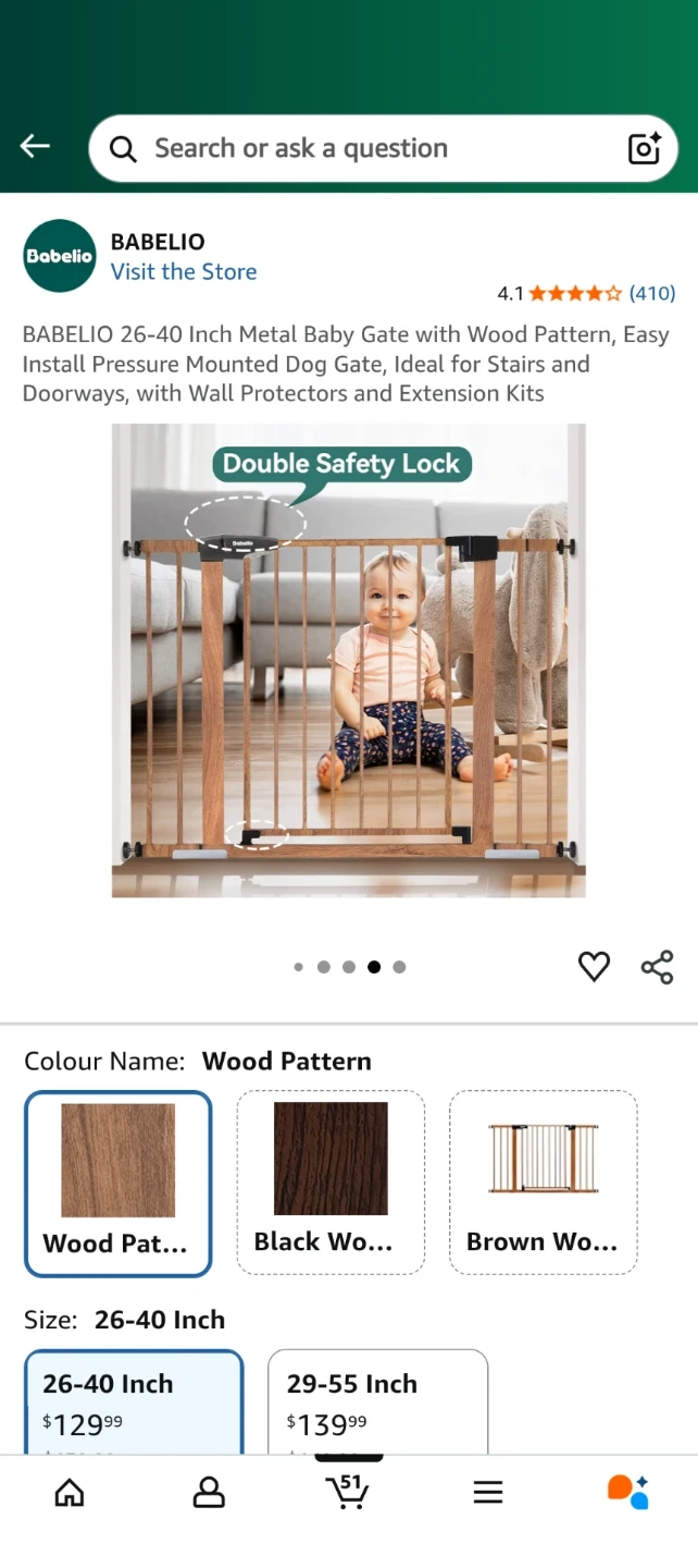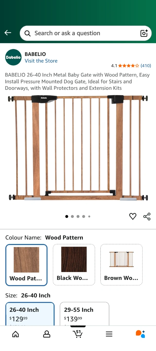 Babelio 26-40 Inch Metal Baby Gate - Wood Pattern