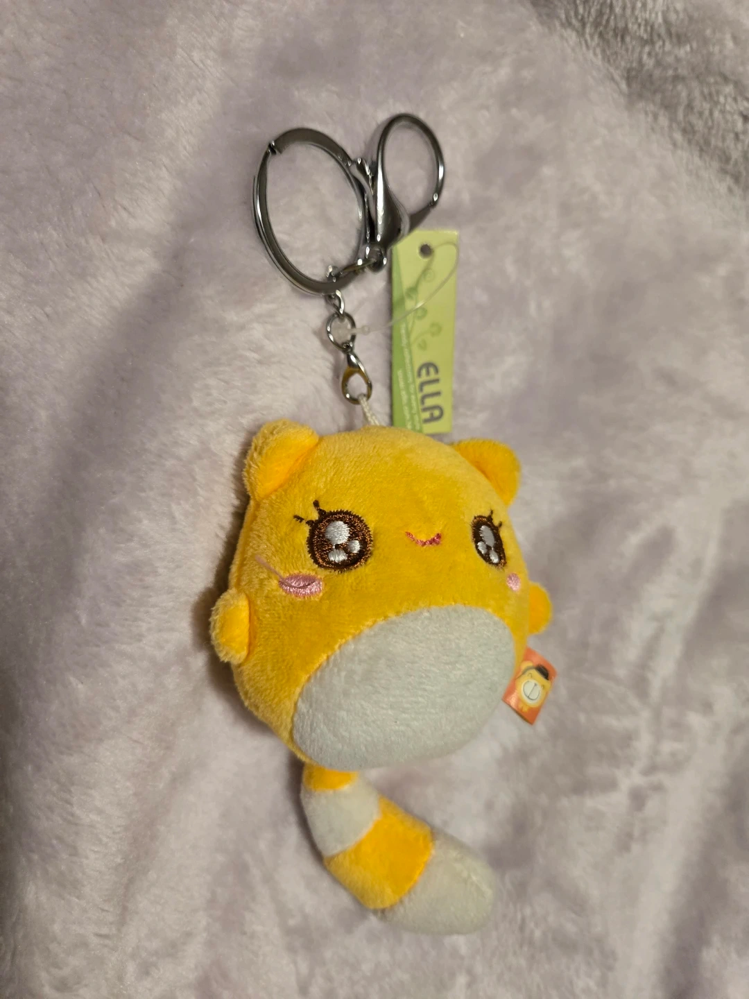 This is a cute Ella plush keychain! It's in great condition and ready to accessorize your bag or keys. The kitty plush is yellow with white accents and has an adorable design. Perfect for anyone who loves cute and quirky accessories ๐บ ๐ฑ ๐ธ