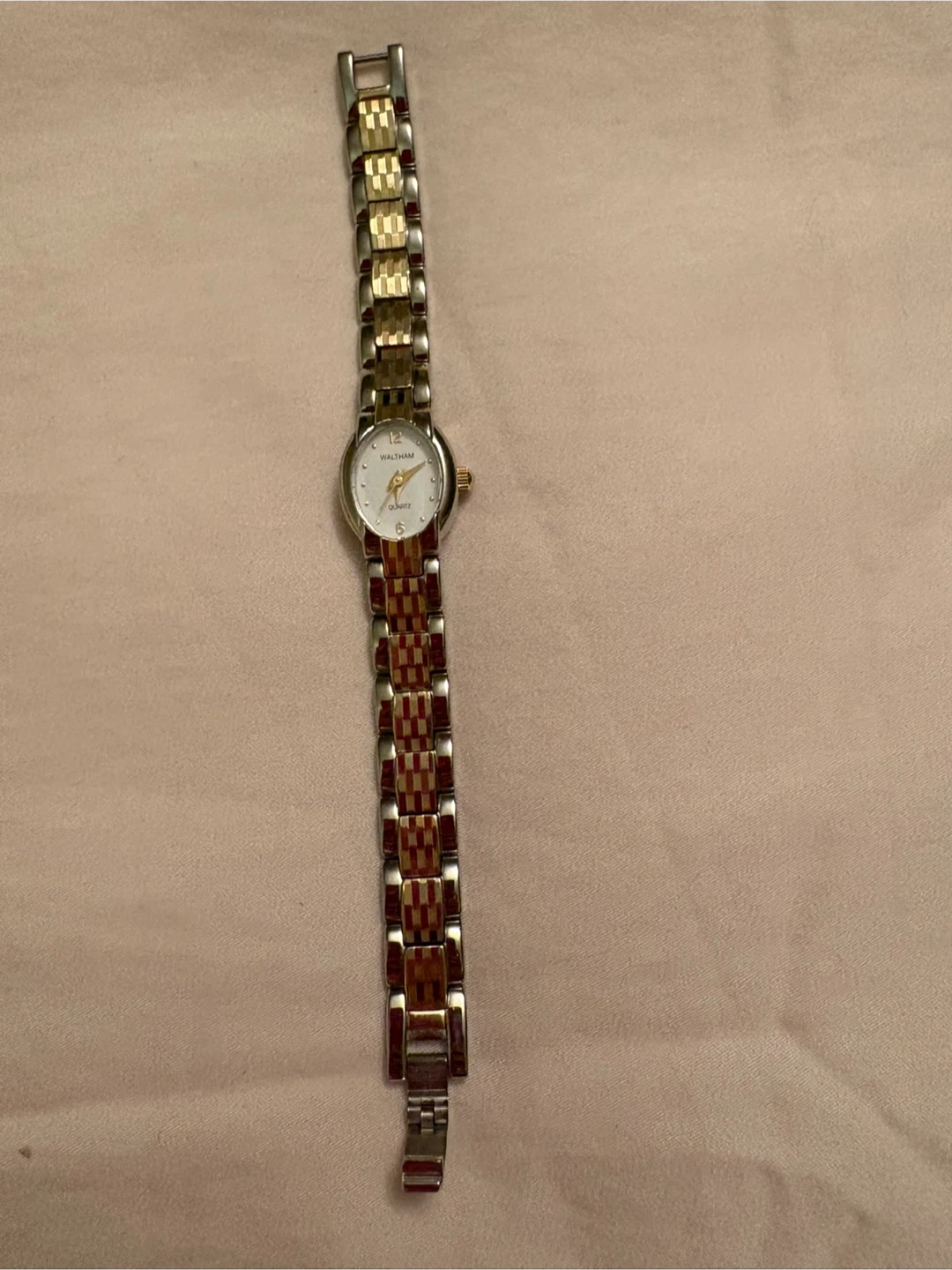 Selling a Waltham ladies watch. It's a quartz watch with a two-tone band (gold and silver). It's in great condition!