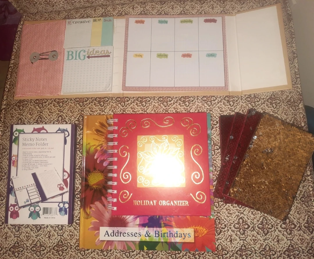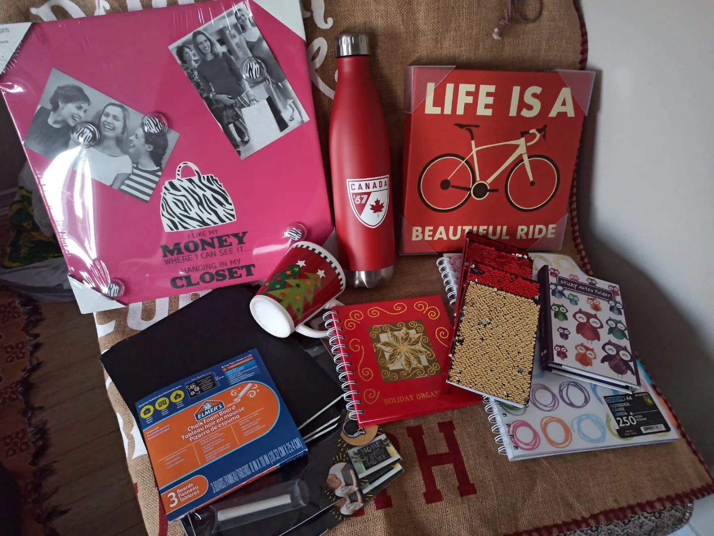 Selling a collection of Home Decor items and Stationery! Prices Start From $1. Please Check List. Included are: - Ceramic Mug with a Christmas Tree design - $1 - Sparkly Notebooks $1 each - 3pk Wipe Clean Chalk Foam Board (8" x 10") - $2 - Self Adhesive 4pk Blackboard Paper + Chalk - $2 - Pocket Agenda - $2 - Red Holiday Organizer - $4 - Addresses & Birthdays Book - $5 - Owl Sticky Note Organizer - $5 - Love The Life Sticky Note Organizer - $5 - Red Framed Art Piece with a Bicycle Design - $5 - Pink Framed Magnetic Board + 5 Magnets - $10 - Red Stainless Steel Insulated Water Bottle - $10 - Handcrafted Art - $10 Come create a bundle and let's make a deal! From a Clean Pet Free & Smoke Free Home DM for Pickup Near Steeles Ave W & Mavis Rd Moving Sale...I have other items to browse. Some Great Gift Ideas! Thank-you for Checking.