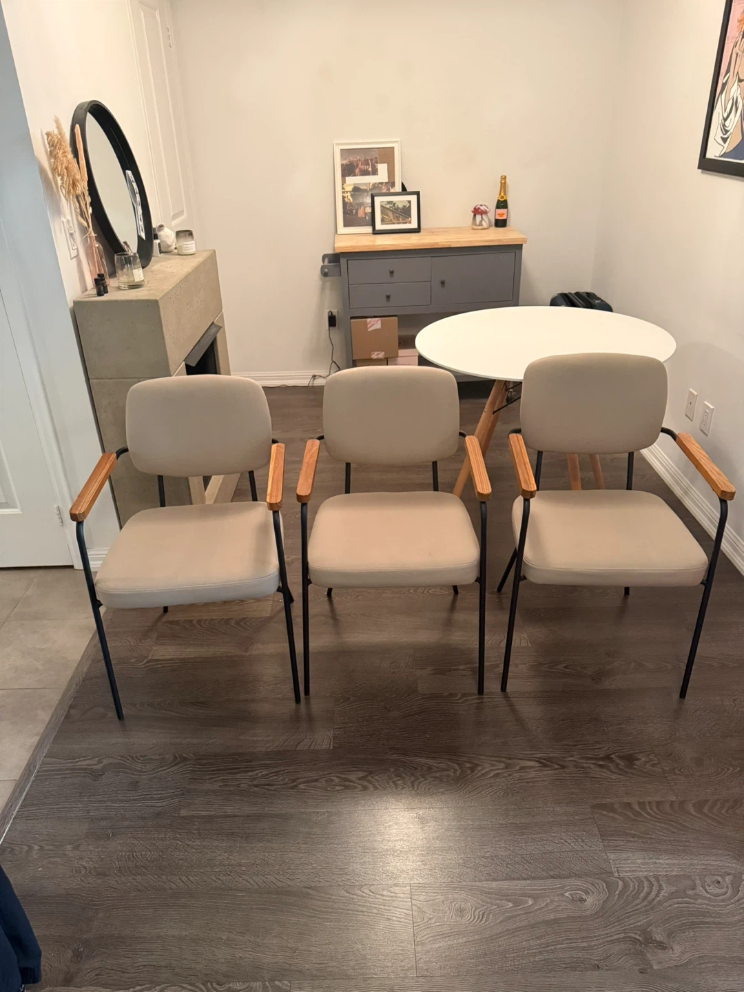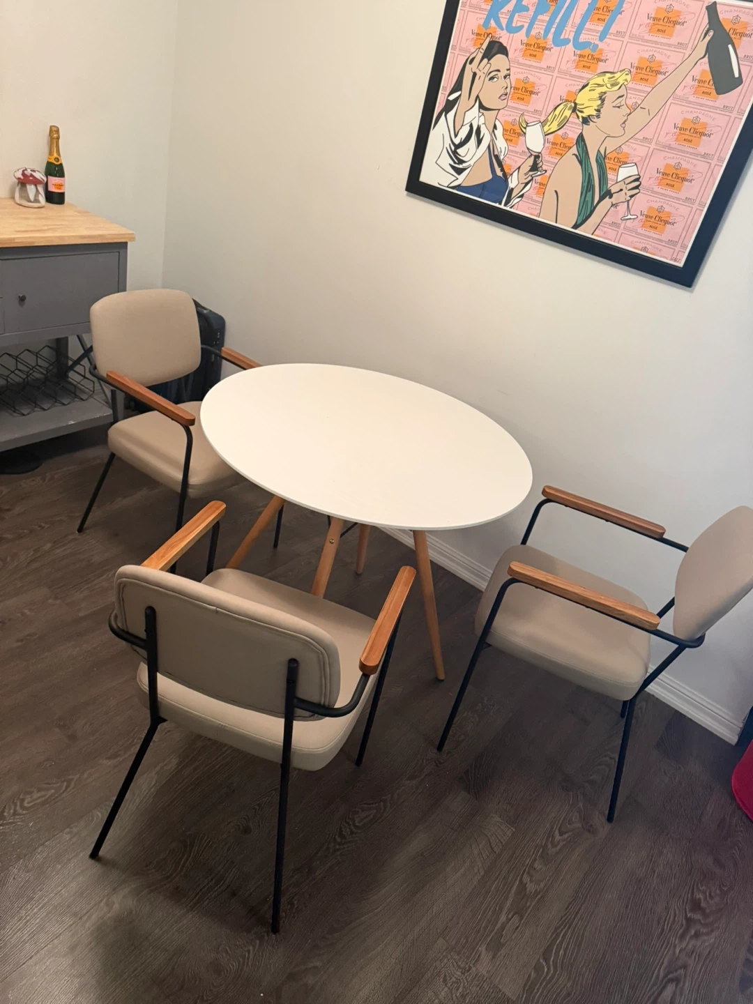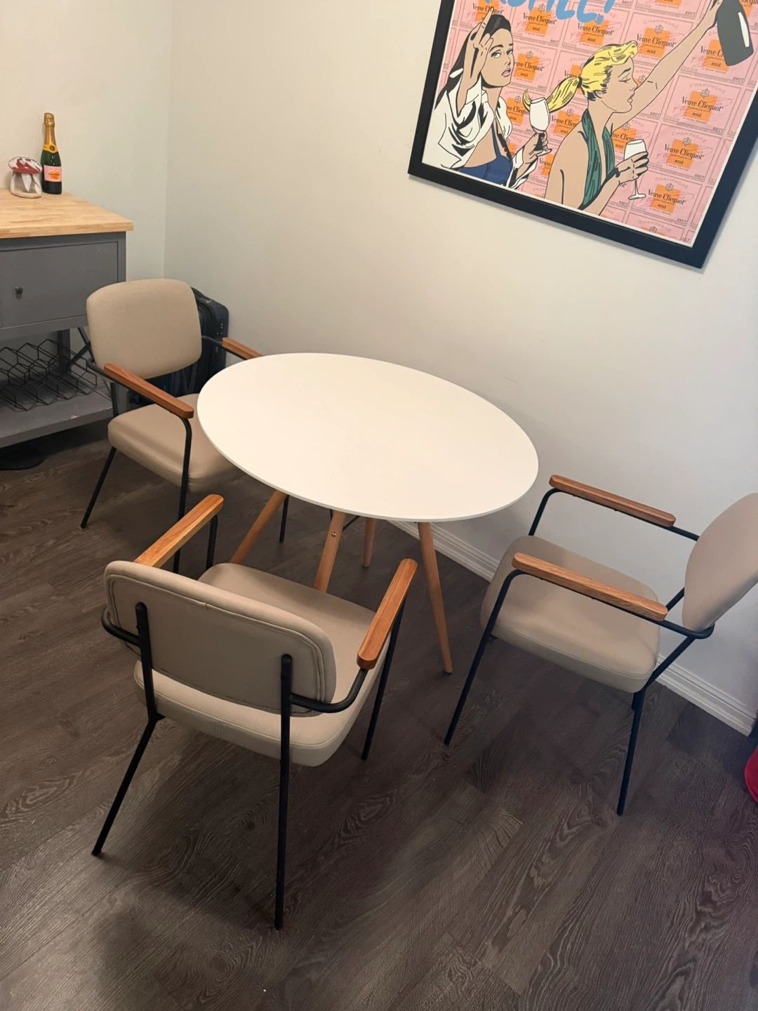 Table is the Eiffel table from Structube, chairs are from Bouclair