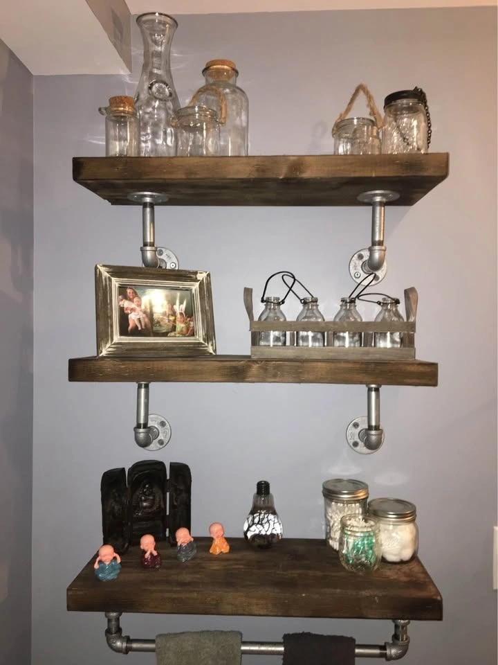 Upgrade your space with these handmade rustic-industrial shelves crafted from solid stained wood and real metal pipe fittings. They're sturdy, stylish, and built to last - perfect for bathrooms, kitchens, entryways, or anywhere you want that modern farmhouse vibe.