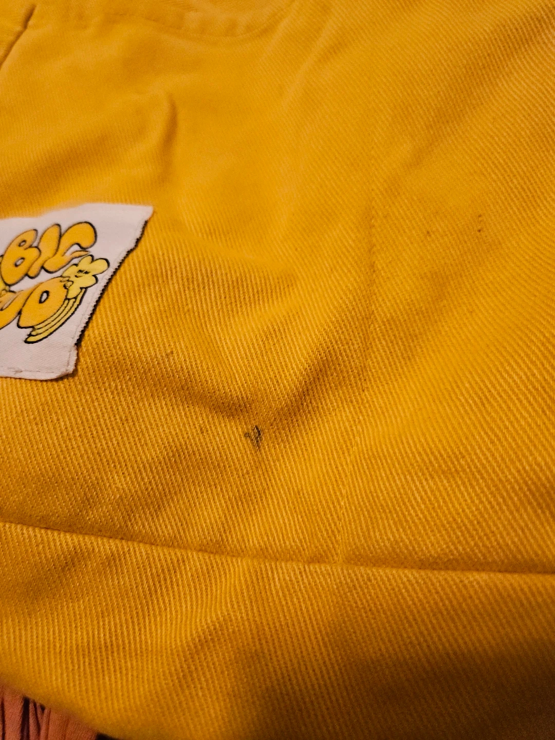 Two minor issues with it: one of the snap closures came off and had to be stitched back on; and a small black mark on the bottom of the bag. Both are pictured and factored into the price.