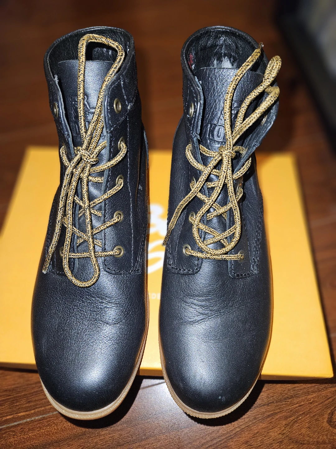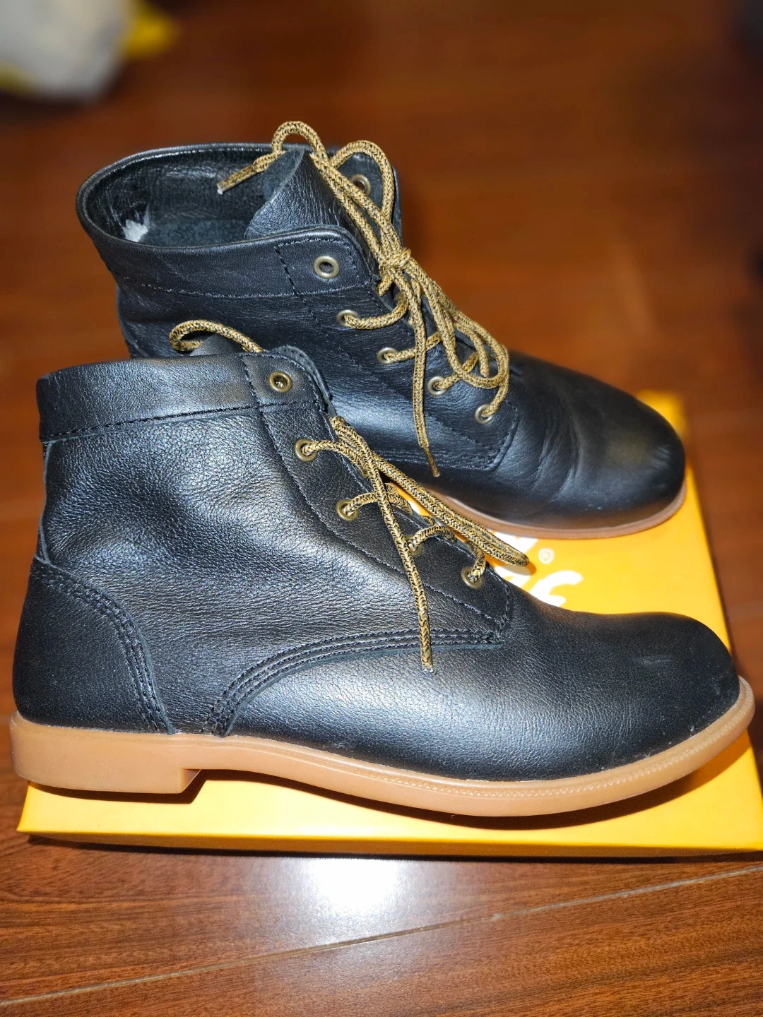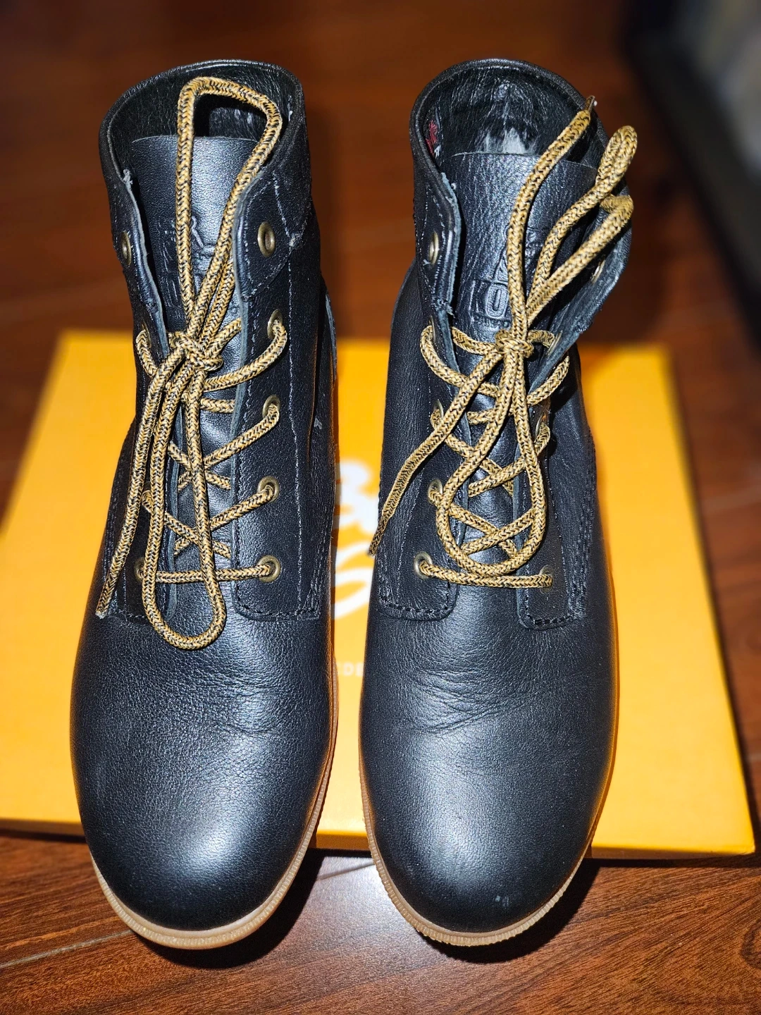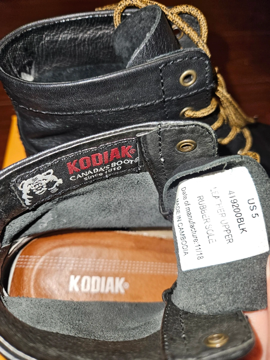 These are a pair of Kodiak Canada's Boot leather boots in black. They're a US size 5. The boots have a rubber sole and the upper is made of leather.