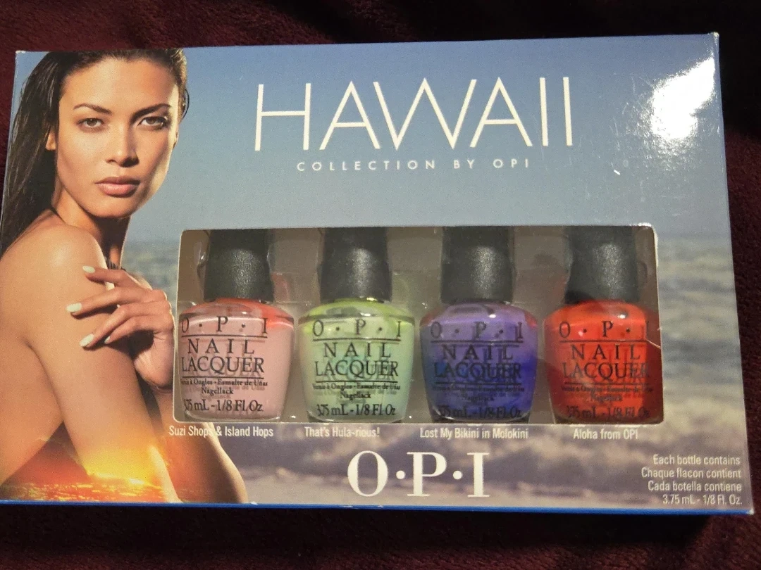 Selling a set of OPI Hawaii Collection mini nail lacquers! This set includes four beautiful colours: Suzi Shops & Island Hops, That's Hula-rious!, Lost My Bikini in Molokini, and Aloha from OPI. Each bottle contains 3.75 mL / 1/8 Fl. Oz. Get ready to bring a little colour of the islands to your nails!