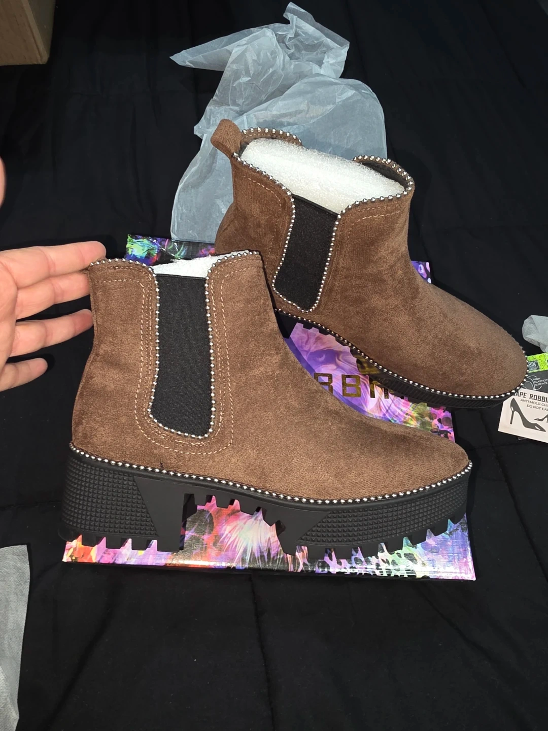 Buy & SellCape Robbin Brown Ankle Boots Size 8Cape Robbin Brown Ankle Boots Size 8$25Here are some cute Cape Robbin ankle boots! They are a brown color and size 8. They have a studded design and come with the boxConditionNewWHERE TO MEETCheck LocationView MapSELLERverifieddelgadoKensington942 reviews1 chats·0 favorites·18 viewsSEND CHAT TO SELLERHi delgado! I’m interested in your listing.Hi delgado! I’m interested in your listing.Get the Karrot app to chatSign In to chat