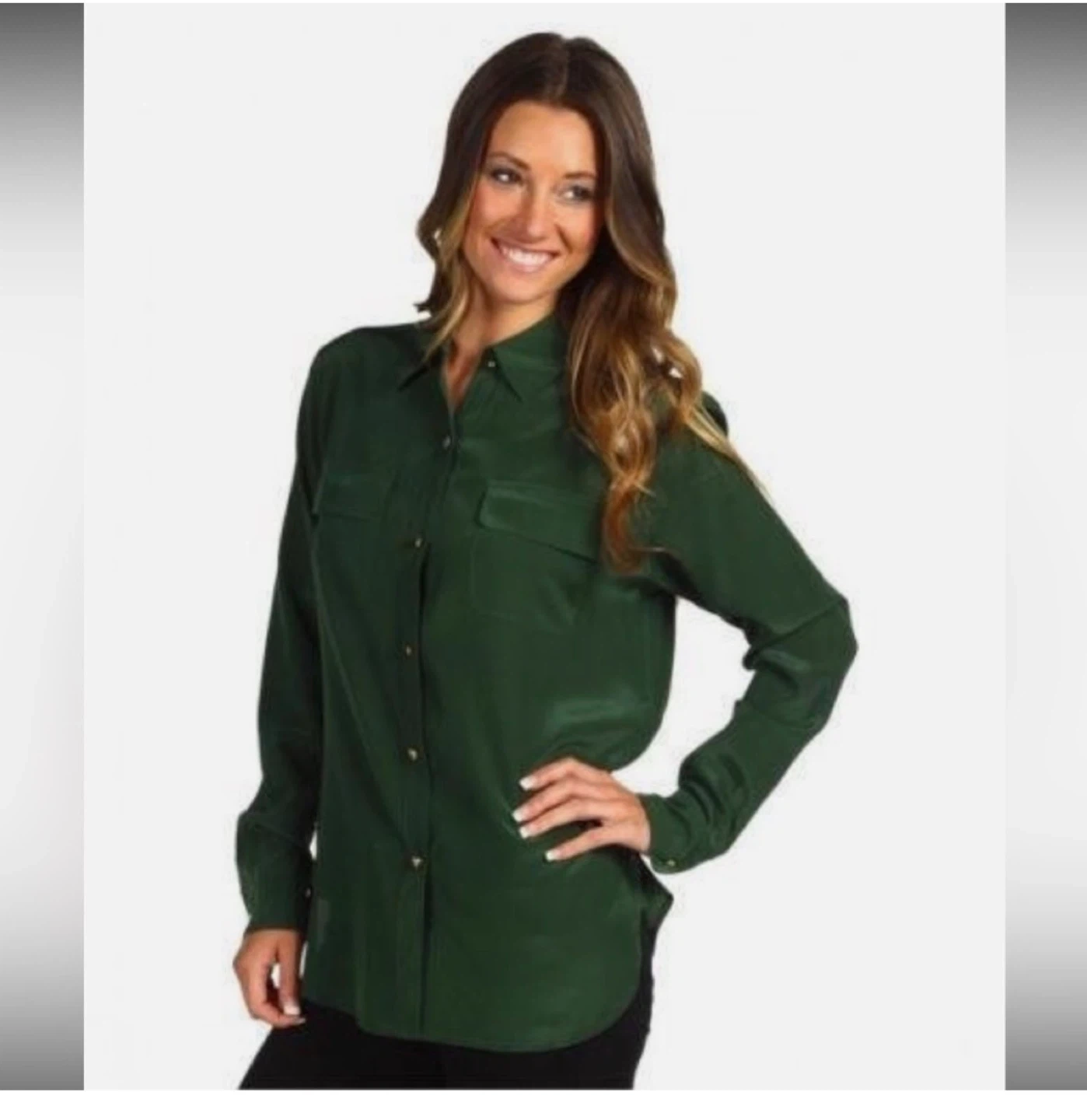 ✨Juicy Couture Angel Sloane Juniper Green Button-Up Blouse