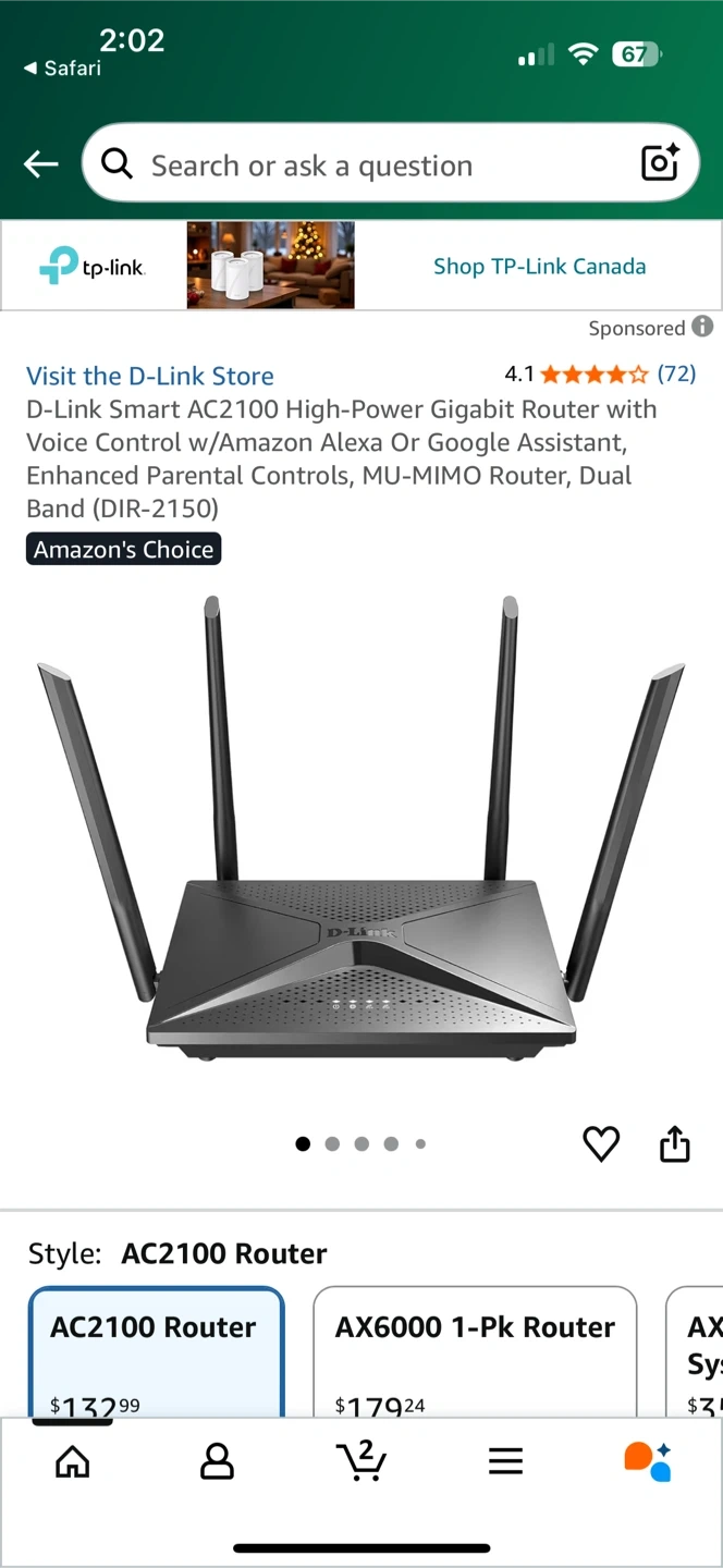 Selling a D-Link Smart AC2100 Router. This high-power gigabit router has voice control with Amazon Alexa or Google Assistant, enhanced parental controls, and a MU-MIMO router with dual band. I bought it for $132.99.