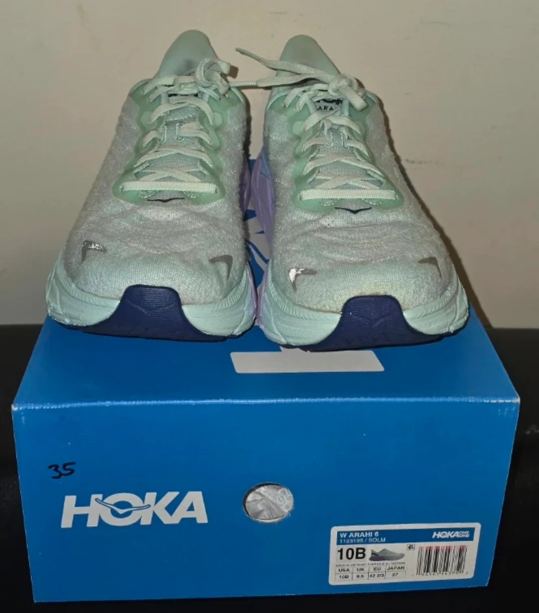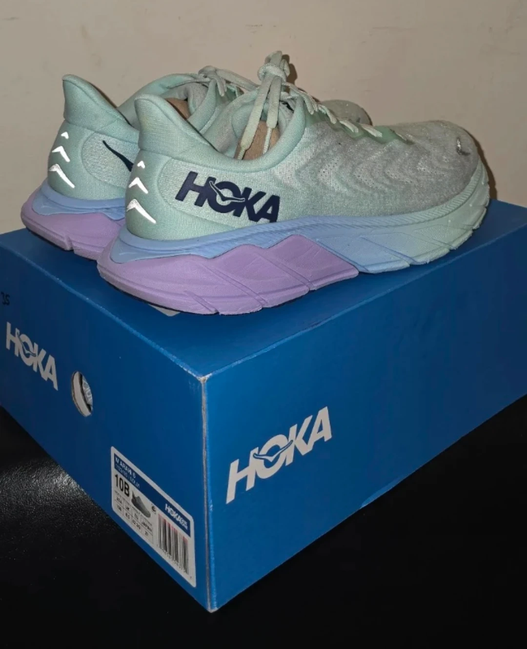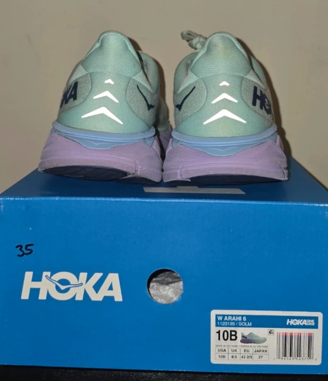 Selling a pair of Hoka Arahi 6 women's running shoes in size 10B. These shoes are known for their stability and comfortable ride. They're perfect for everyday runs or walks!