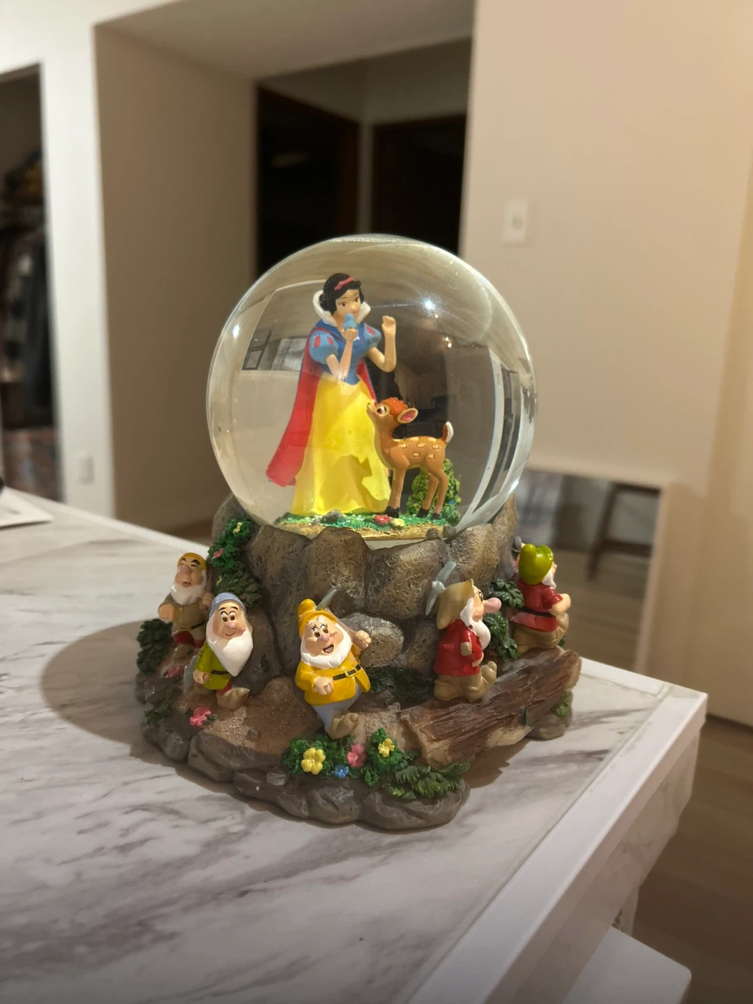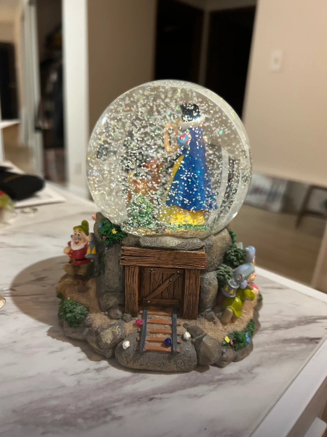 Selling a super cute, amazing quality Disney snow globe (Snow White and the Seven Dwarfs). It's a great piece for any Disney collector or fan. The globe is in great condition (no scratches or chips) and has glitter inside that shimmers with the “snow”.