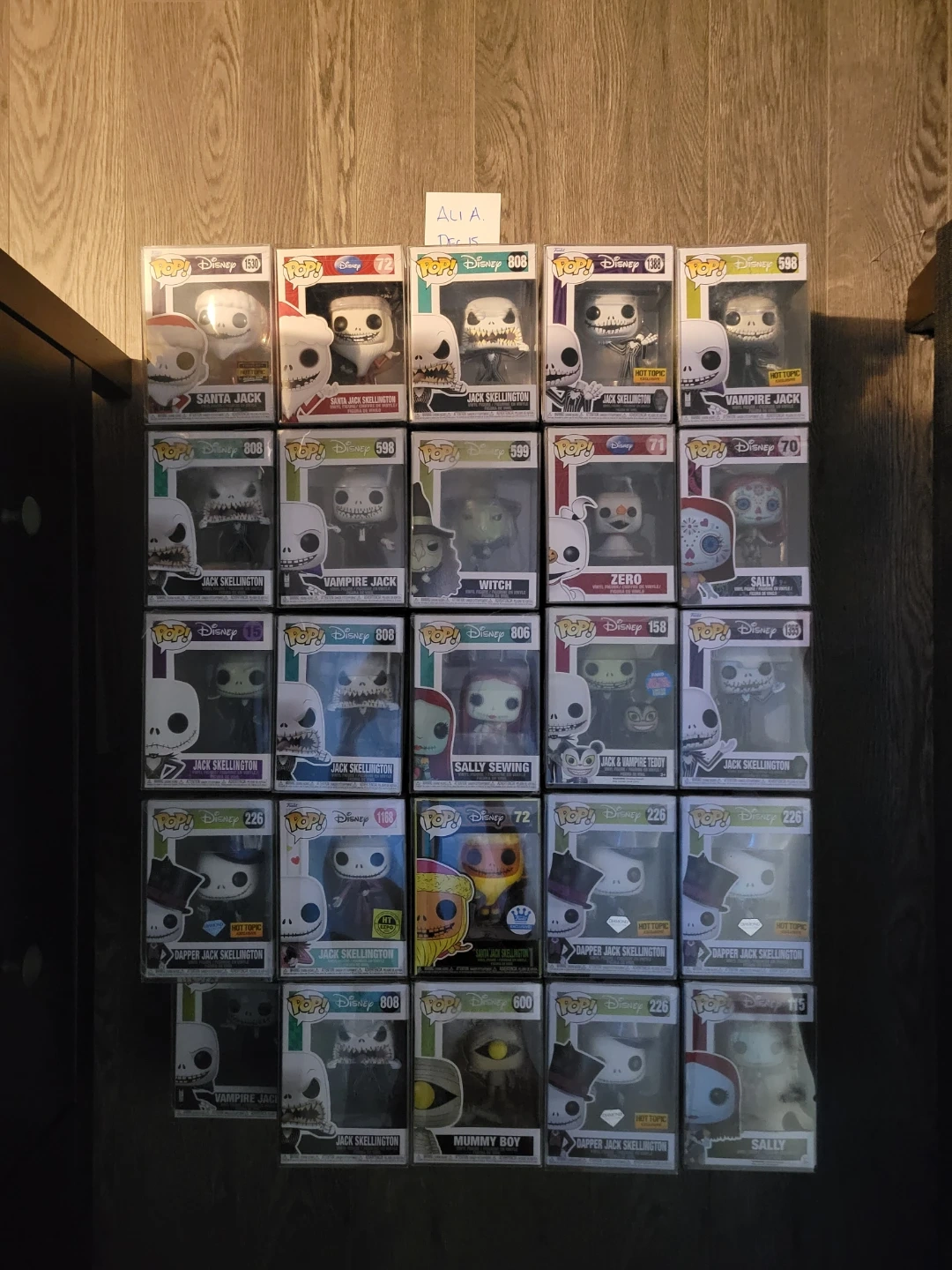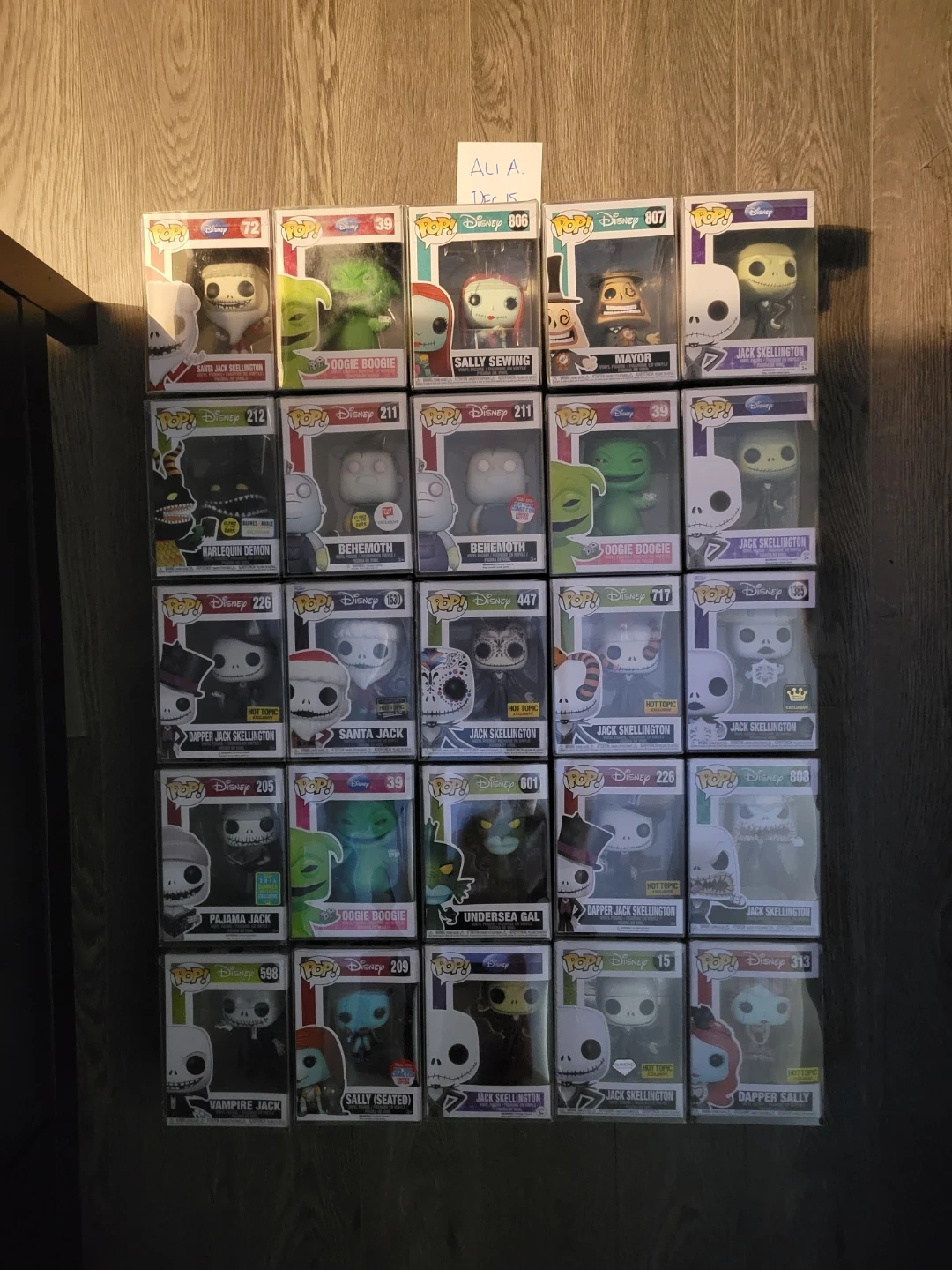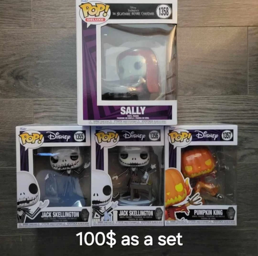 Selling various Funko Pop! figures from The Nightmare Before Christmas. There's a bunch of different characters like Jack Skellington, Sally, Oogie Boogie, and more! Most are in their original boxes and in great condition. Perfect for any collector or fan!