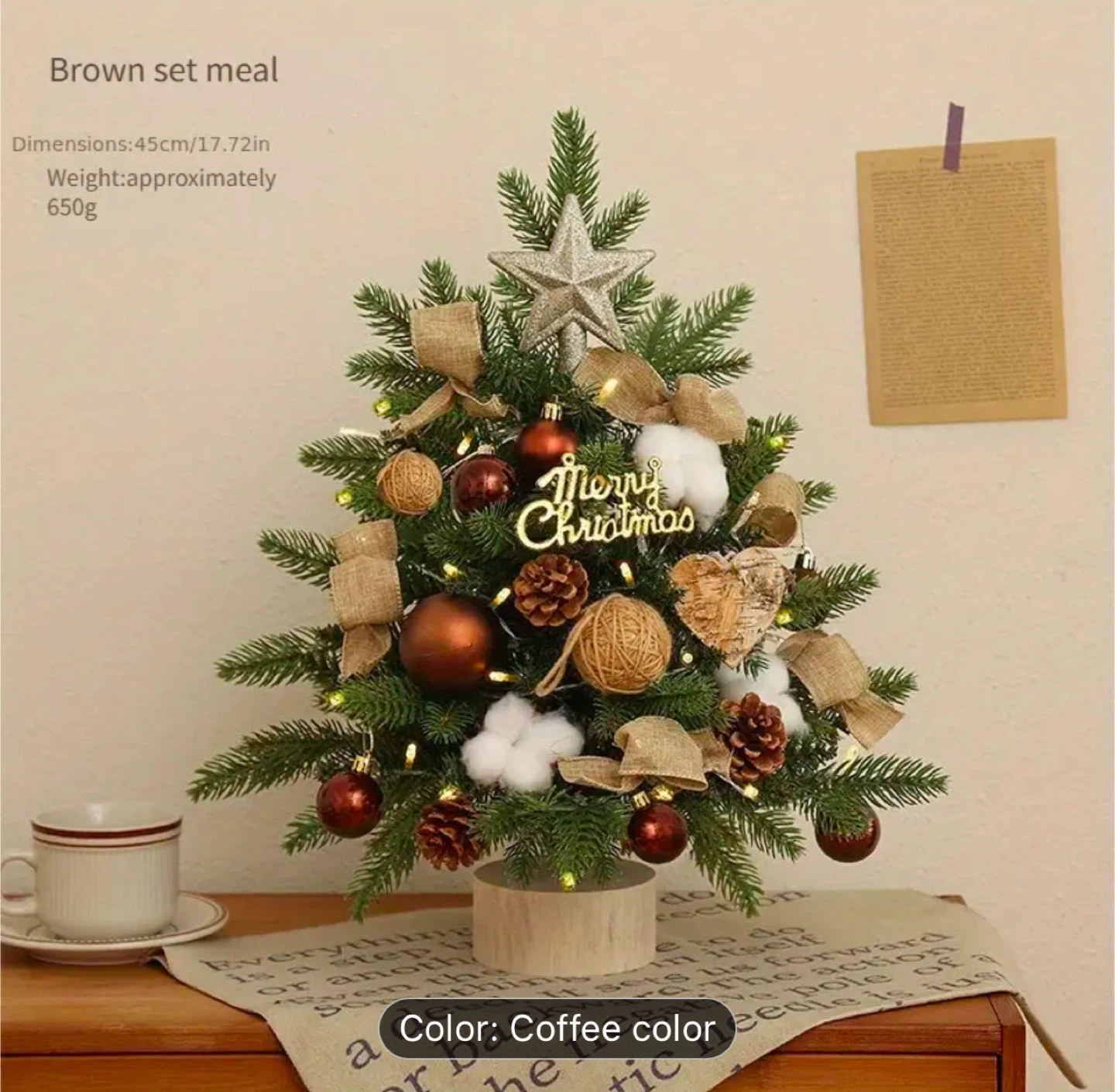 1pc Mini Christmas Tree Set, Contemporary Style, Rustic Wood & Plastic, Seasonal Festive Decor, No Bulbs, Battery-Free, Perfect for Home & Kitchen, Ideal Gift for Christmas & New Year(coffee color)