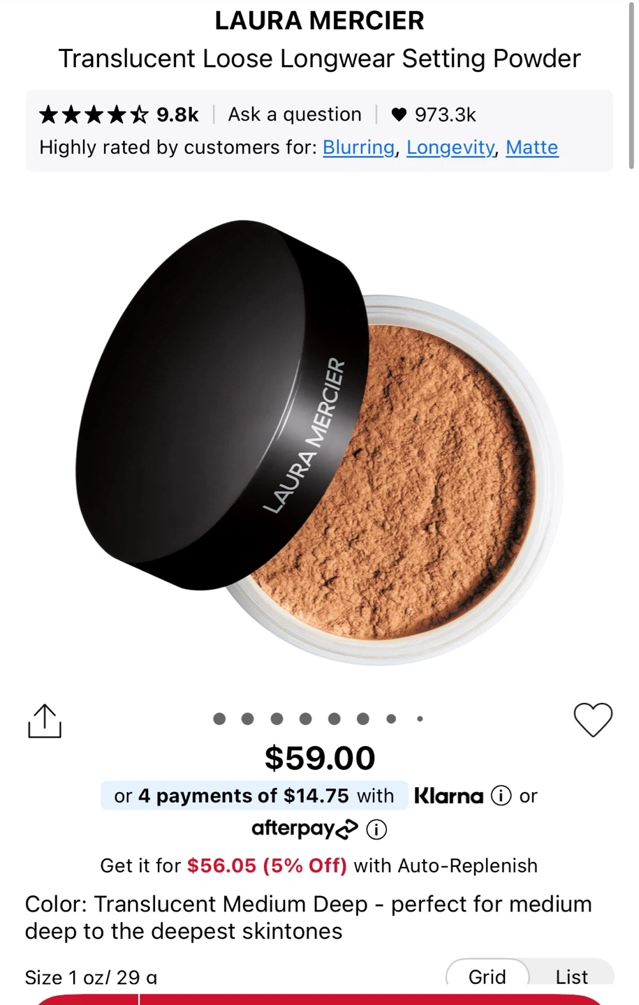 Laura Mercier Translucent Setting Powder Medium Deep